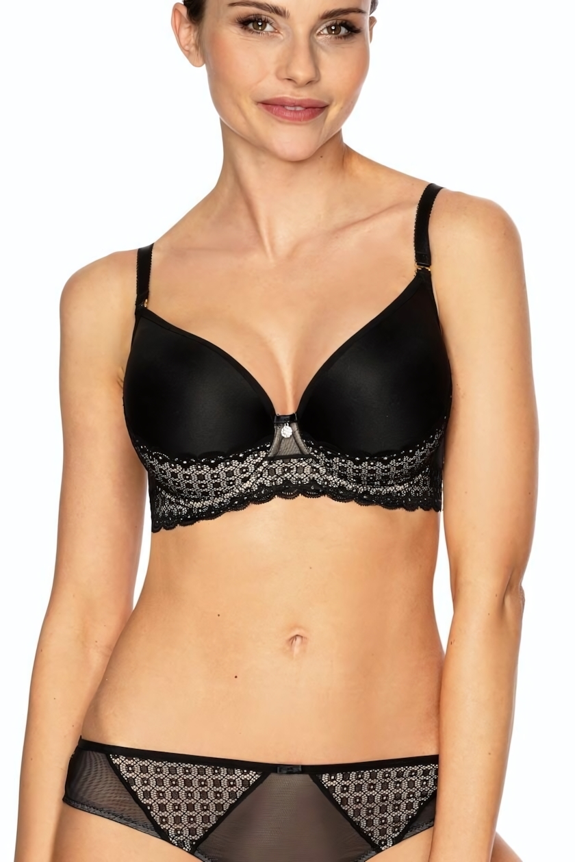 - Сочетание гладкого поролона и ажурного кружева для тактильного комфорта