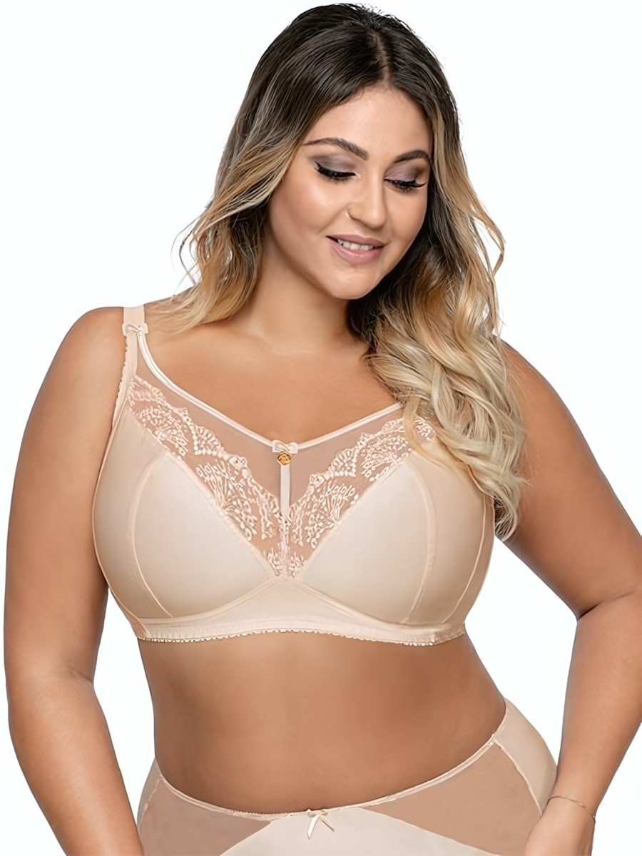 Этот бюстгальтер с мягкими чашечками без косточек — идеальный выбор для тех, кто ценит комфорт и стиль. Он обеспечивает отличную поддержку благодаря дополнительным боковым вставкам и эластичной ткани, что делает его незаменимым в вашем гардеробе. Чашки бюстгальтера шиты из высококачественной сетки с вышивкой, что придаёт ему изысканный вид и делает его подходящим для любого случая.