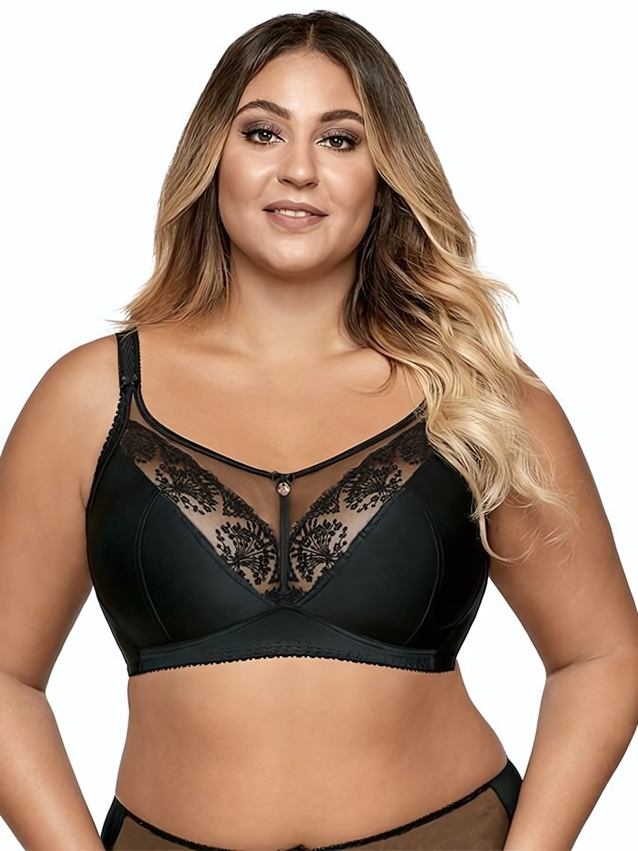 - Мягкие трехчастные чашечки из эластичной ткани и сетки с вышивкой