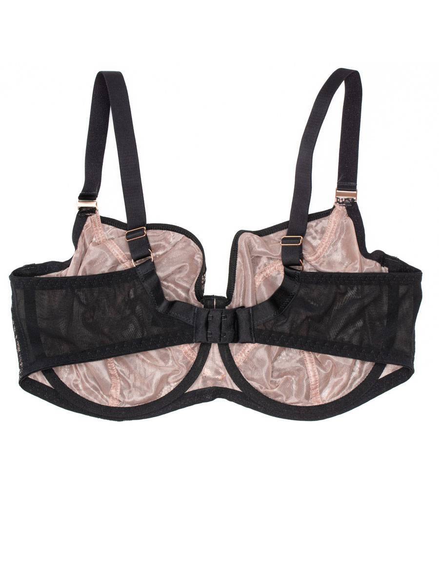 Бюстгальтер с мягкими гипюровыми чашками, размер 80D, черный, регулируемые бретели, медная фурнитура