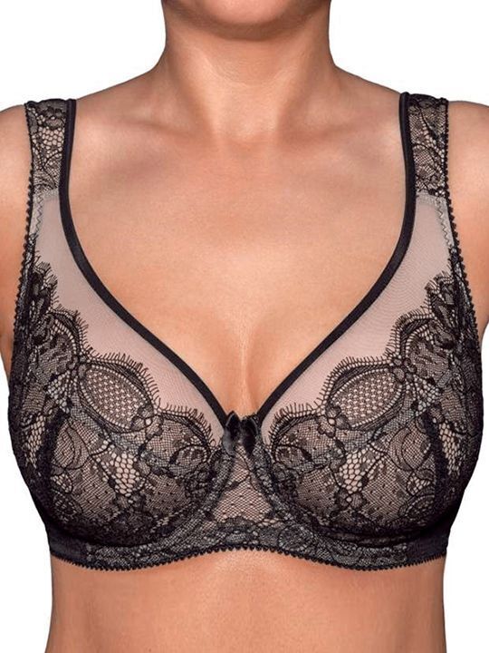 Бюстгальтер с мягкой чашкой 'Divine', размер 75G, черный/бежевый, кружево