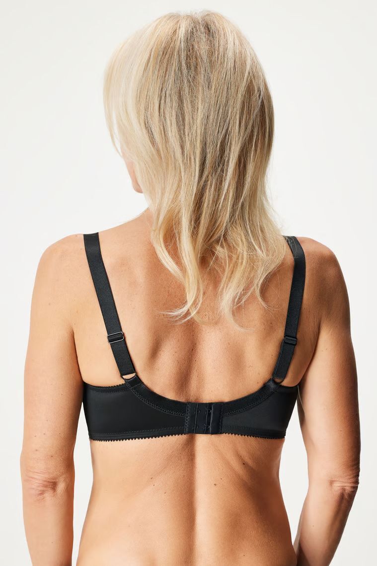 Глубокий вырез чашек визуально корректирует линию декольте, а усиленные боковые швы гарантируют надежную поддержку. Комплектация с регулируемой застежкой на 3 крючка позволяет точно подогнать изделие по объему под грудью.