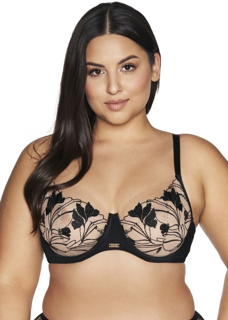 Бюстгальтер с мягкой чашкой «Sublime», цветочная вышивка, черный, размер 80E, 88% полиамид