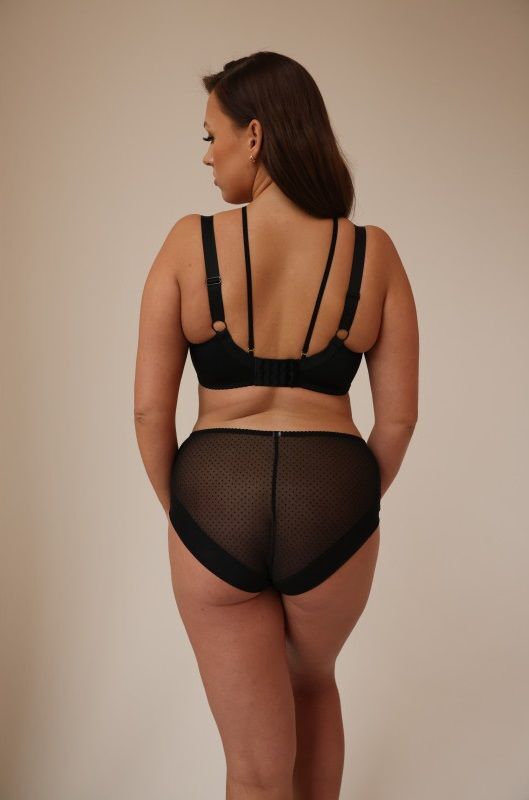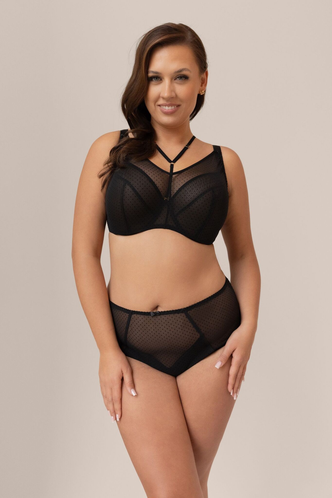 Неэластичные чаши из полиамидной сетки (85% полиамид, 15% эластан) гарантируют сохранение формы после многочисленных стирок. Универсальный черный цвет с деликатным узором сочетается с любым гардеробом.