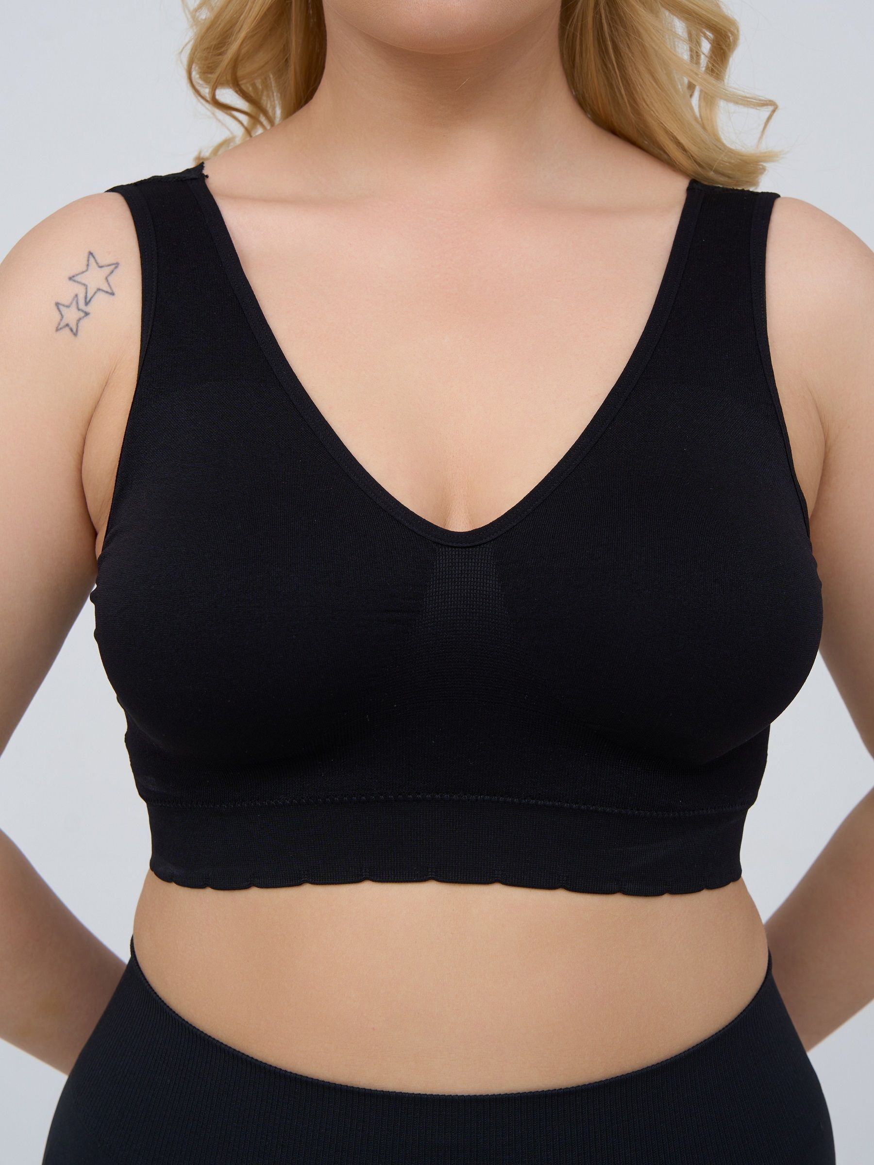 Размер XL — универсальный вариант для девушек, ценящих комфорт и эстетическую привлекательность. Цвет черный легко сочетается с любой одеждой и подходит как для дома, так и для выхода. Сделайте покупку сегодня и почувствуйте разницу с нашим бюстгальтером-топом, который станет незаменимым элементом вашего гардероба.