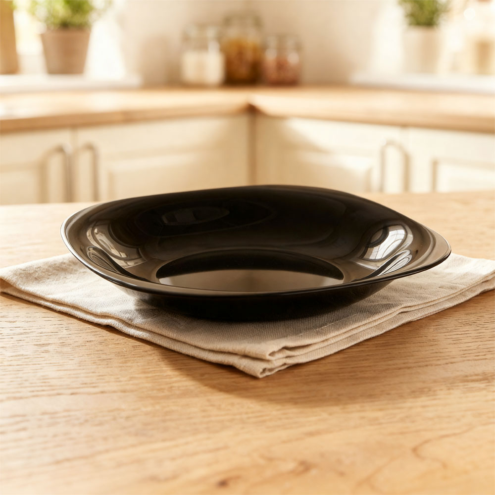 Эта суповая тарелка сочетает в себе современный дизайн и практичность. Квадратная форма со скруглёнными углами привлекает внимание и делает сервировку более оригинальной. Глянцевая чёрная поверхность придаёт посуде элегантность, которая гармонично впишется как в повседневный, так и в праздничный стол.