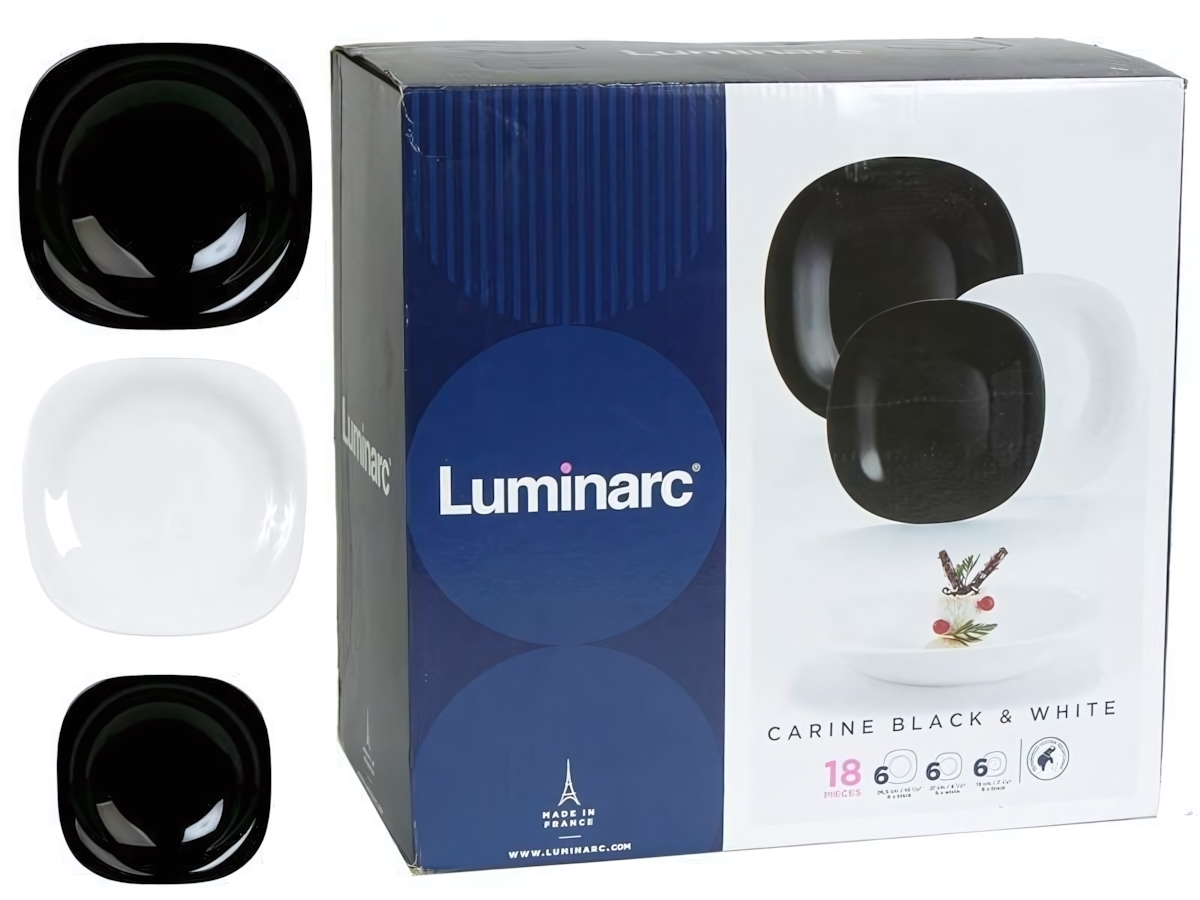 Столовый сервиз Luminarc сочетает французское качество и современный дизайн. Квадратные тарелки в контрастной черно-белой гамме создадут стильный акцент на любом столе, а прочная стеклокерамика гарантирует долгий срок службы.