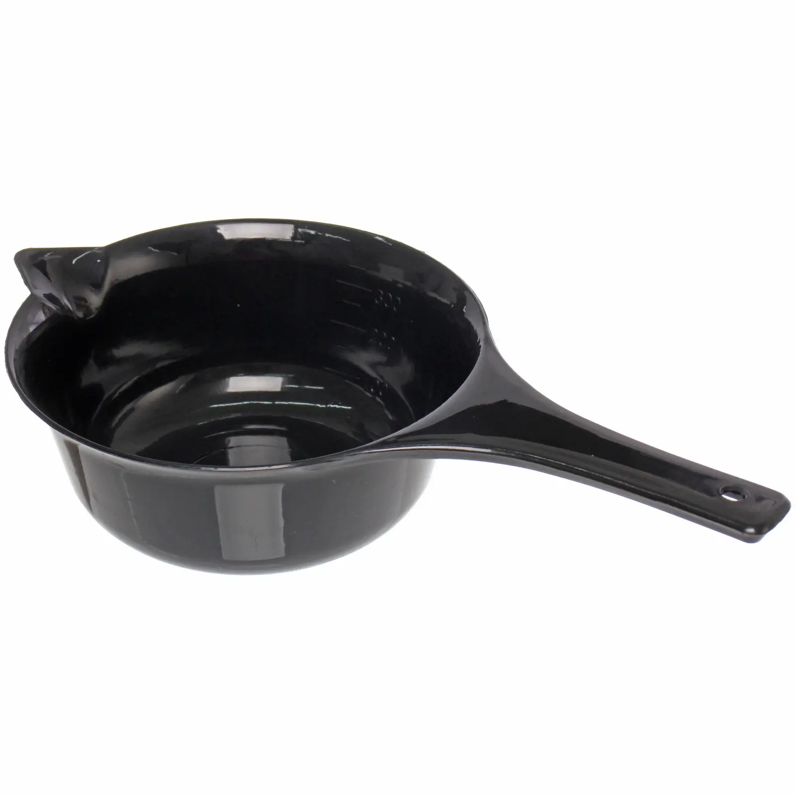 Чёрный цвет универсально подходит к любому салонному интерьеру и не выгорает под дневным светом. Диаметр 12 см позволяет ставить чашу в стандартный держатель для краски или использовать маленькую прищепку, если работаете дома.