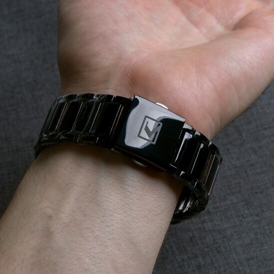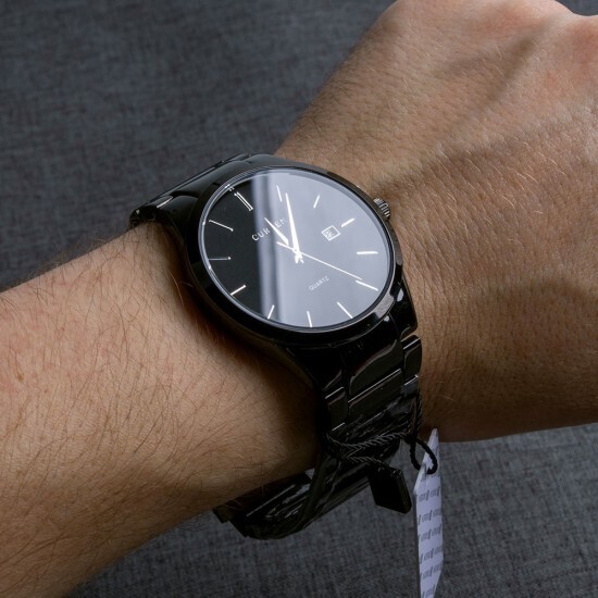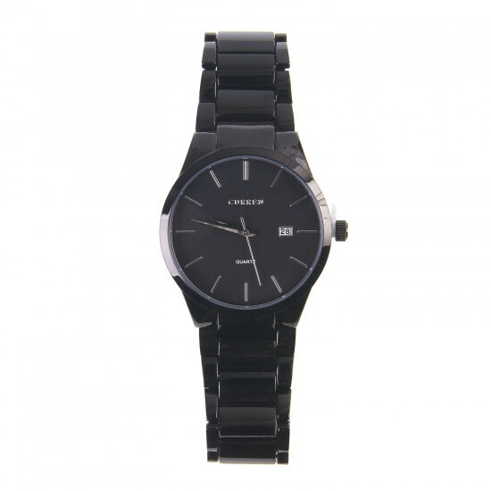 Часы имеют водонепроницаемость 3 ATM, что позволяет не беспокоиться о попадании влаги. Размеры часов стандартные, что делает их удобными для ношения на запястье. Браслет состоит из звеньев, что позволяет подгонять его под размер запястья. Часы представлены в черном цвете, что добавляет им строгости и элегантности.