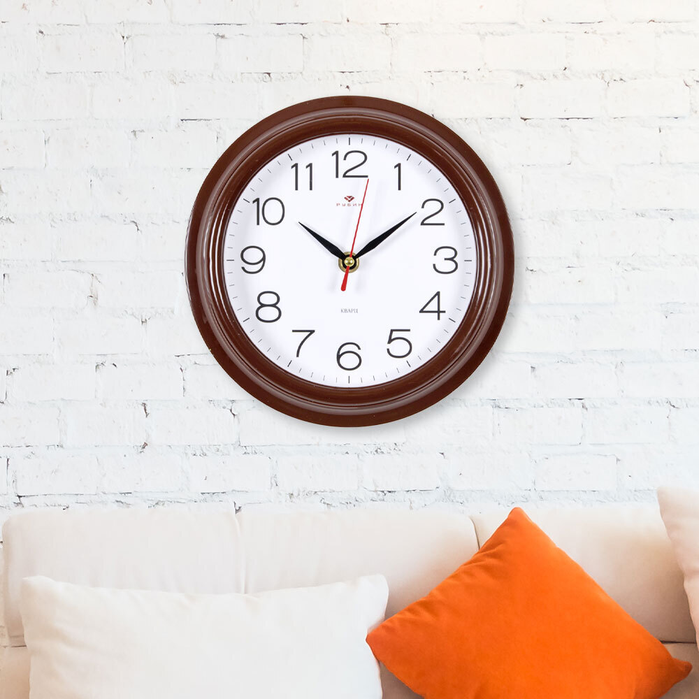 Эти часы изготовлены с учетом современных стандартов качества. Они имеют три стрелки: черную часовую, черную минутную и красную секундную, что делает их легко читаемыми и функциональными. Крупные черные арабские цифры на белом циферблате обеспечивают высокую видимость на любом расстоянии. Часы имеют диаметр 21 см, что делает их идеальными для размещения на стене в жилой комнате, кухне или офисе.