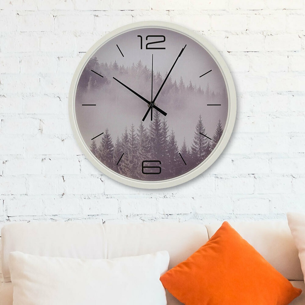 Часы настенные круглые d30см, корпус белый, серия "Лес", кварцевый механизм, стильный дизайн
