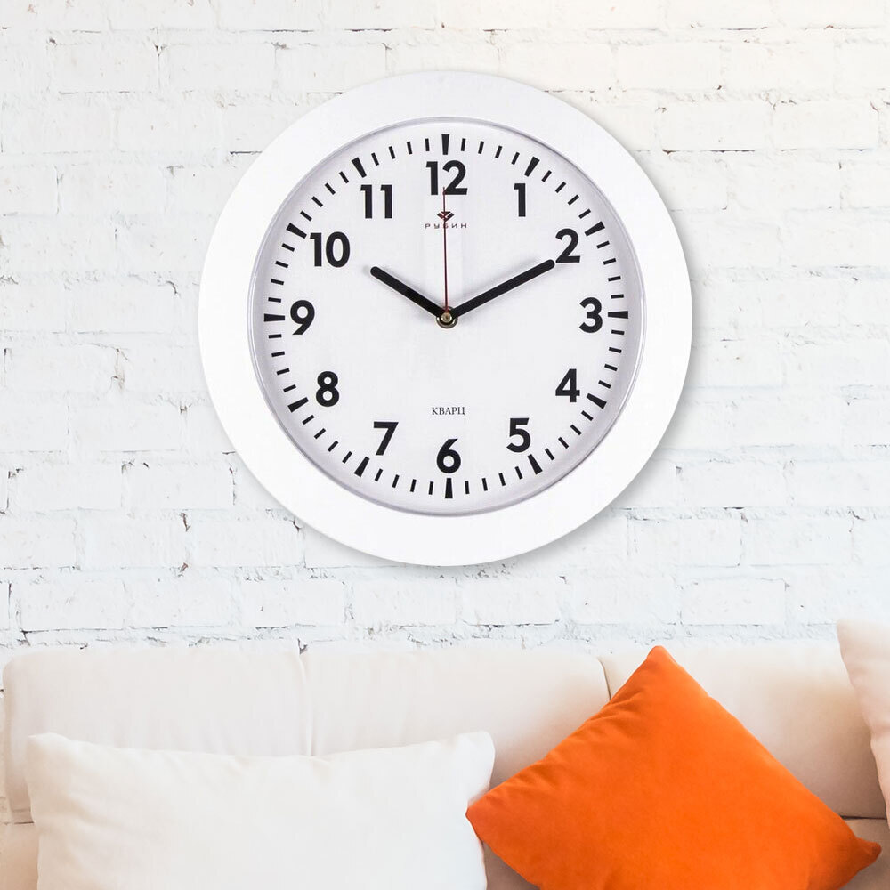 Ощутите комфорт в интерьере с круглыми настенными часами диаметром 31см. Их лаконичный белый корпус и светлый циферблат мгновенно добавляют свежести и аккуратности вашему пространству. Для гостиной, кухни, офиса — эти часы органично впишутся в любой стиль благодаря универсальному цвету.