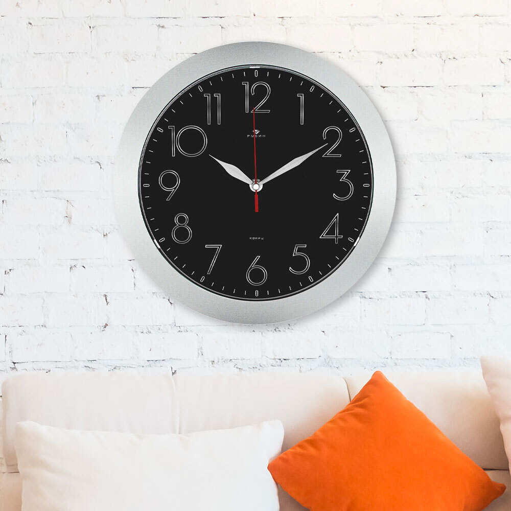 Часы подойдут для размещения в гостиной, спальне, кухне или офисе. Благодаря строгому дизайну и контрастному сочетанию цветов они вписываются в различные стили интерьера — от классики до лофта. Кварцевый механизм обеспечивает надёжность и точность хода без постоянной корректировки. Простота монтажа позволяет быстро повесить часы на стену — без дополнительных инструментов и сложных установок.