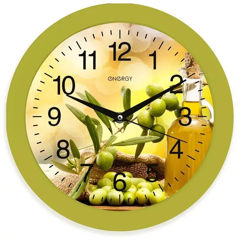 Кварцевые часы Energy с оригинальным оливковым дизайном создадут уютную атмосферу и станут стильным украшением кухни, столовой или гостиной. Тематический рисунок с маслиновыми ветвями добавит средиземноморский шарм вашему пространству.