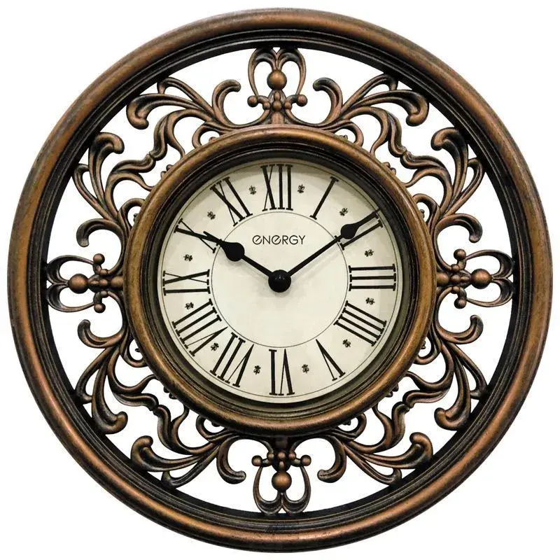 Настенные часы ENERGY «ЕС-120» сочетают в себе точность кварцевого механизма и изысканный внешний вид. Декоративная рамка с художественными узорами добавит шарма любому помещению — от гостиной до офиса.