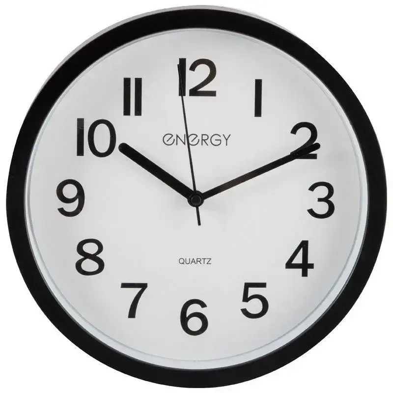 Часы настенные кварцевые Energy ЕС-139, черный корпус, белый циферблат, арабские цифры