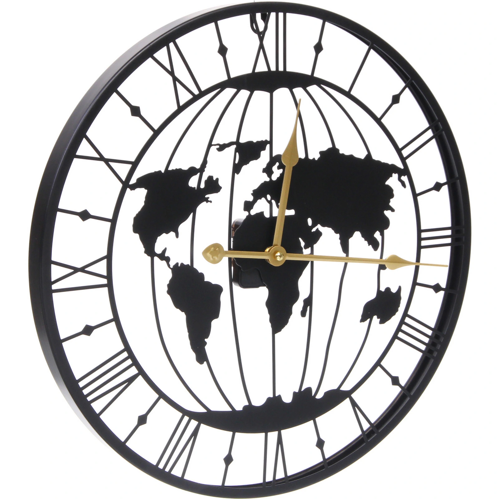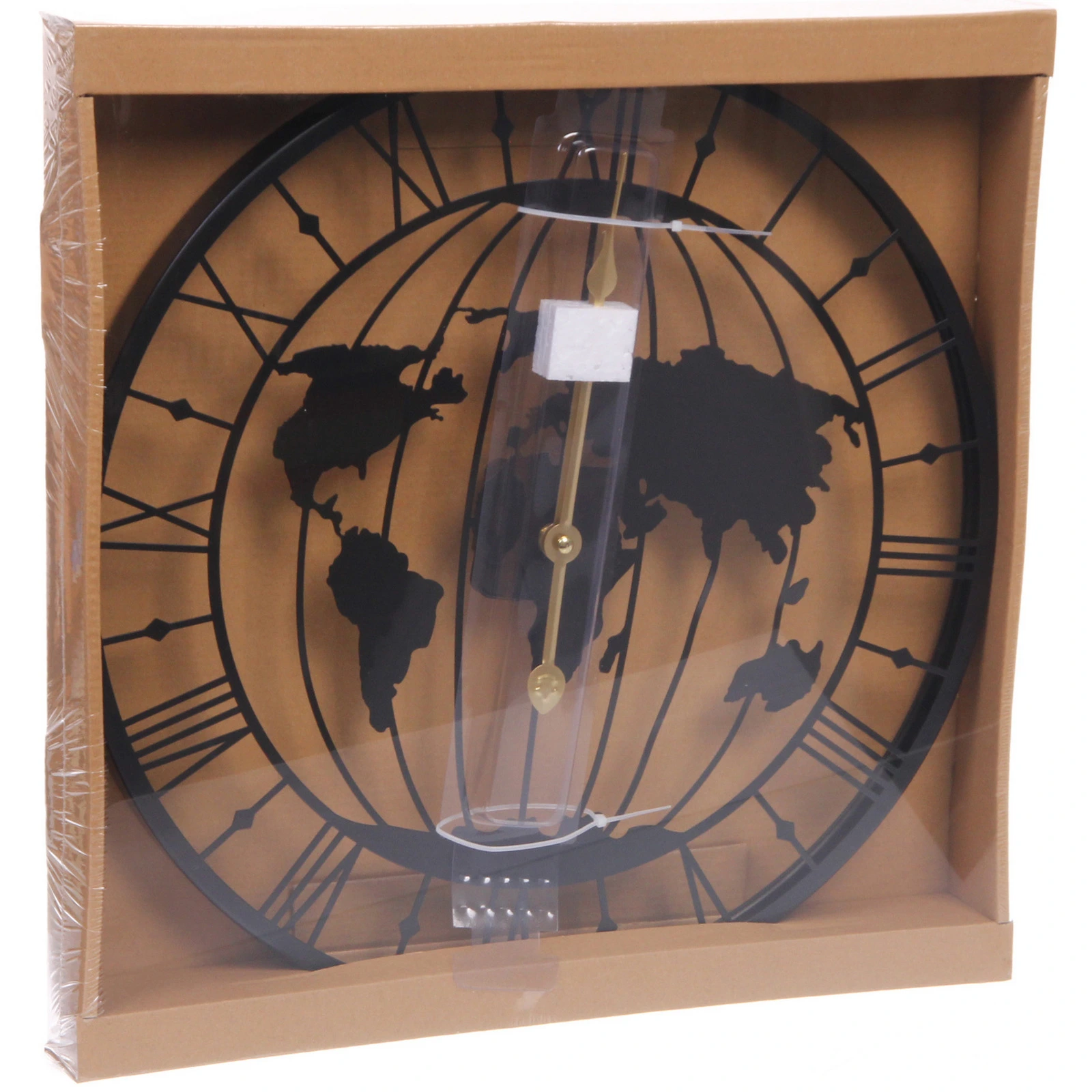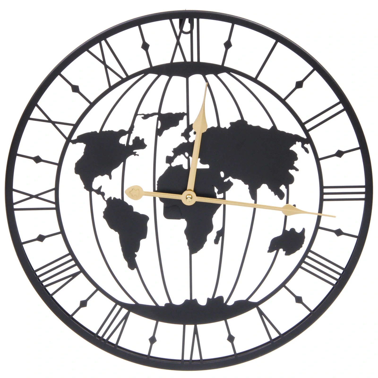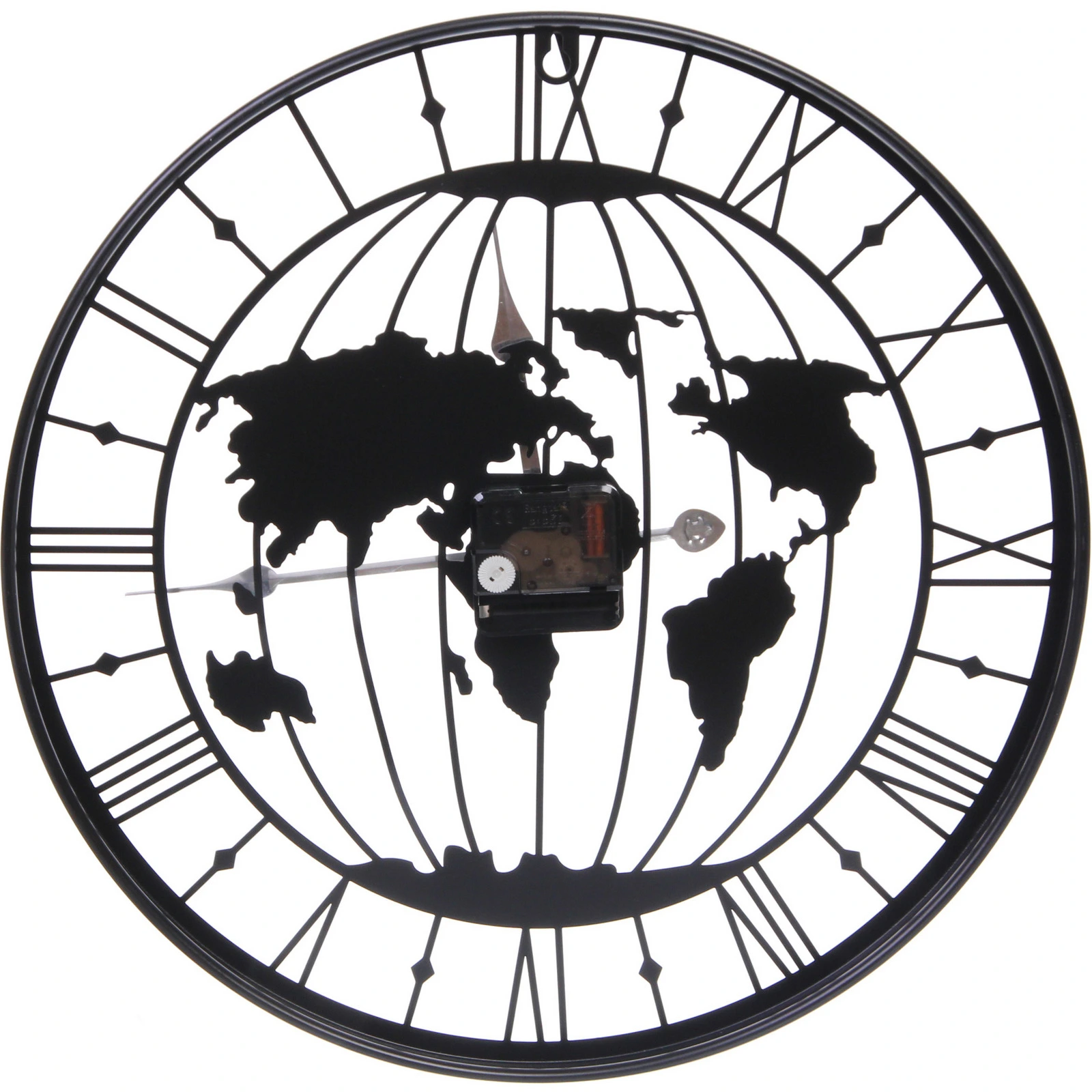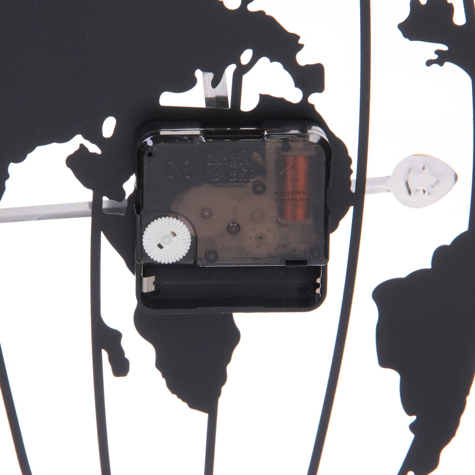 Часы диаметром 40 см станут заметным акцентом в комнате. Их главная особенность — ажурный циферблат, выполненный в виде стилизованной карты мира с контурами материков и меридианами. Это создает эффект объема и легкости. Классические римские цифры по внешнему краю подчеркивают элегантность и отсылают к винтажной картографии.