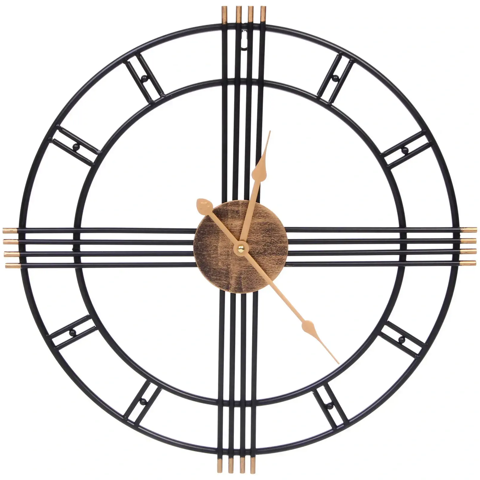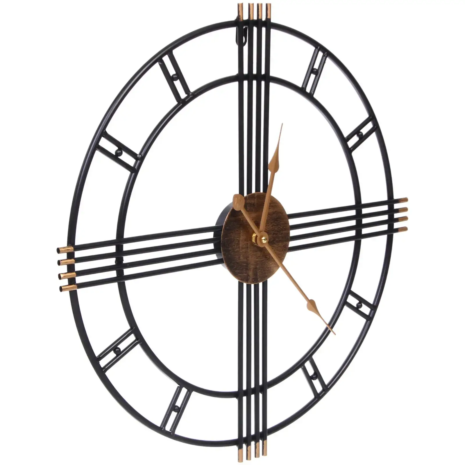 Настенные часы «LOFT HOME», черные, 50 см, металл, золотые стрелки, римские цифры