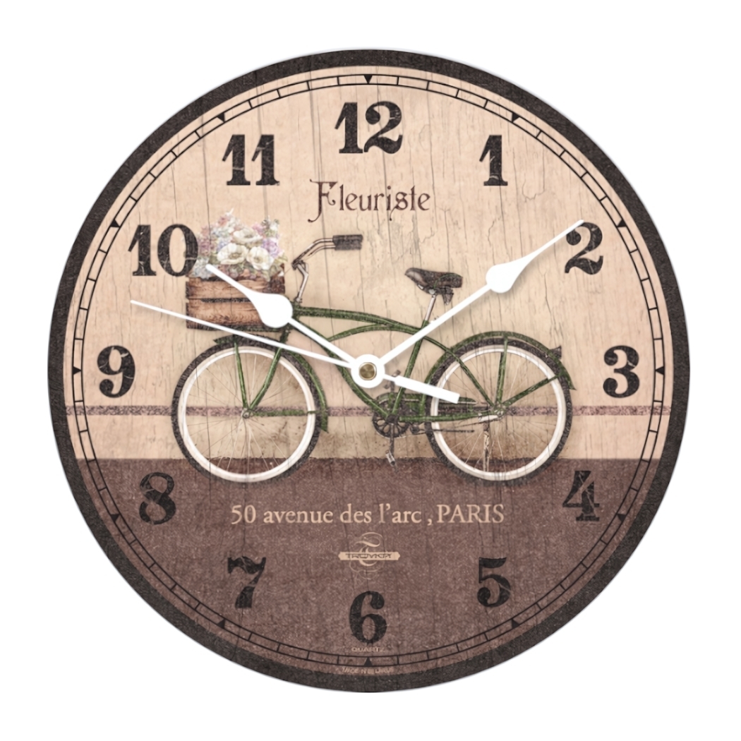 - Утонченный декор: циферблат с изображением велосипеда и цветочной корзины перенесет вас на улочки Парижа