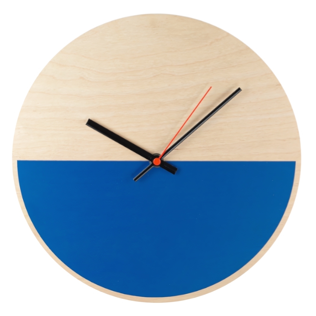 Выбирая настенные часы модель 90, вы получаете не только стильный элемент декора, но и практичное решение для контроля времени. Корпус часов выполнен из фанеры, что придает им легкость и прочность. Темно-синий цвет нижней части часов создает контраст с натуральным деревом, подчеркивая их уникальный дизайн.