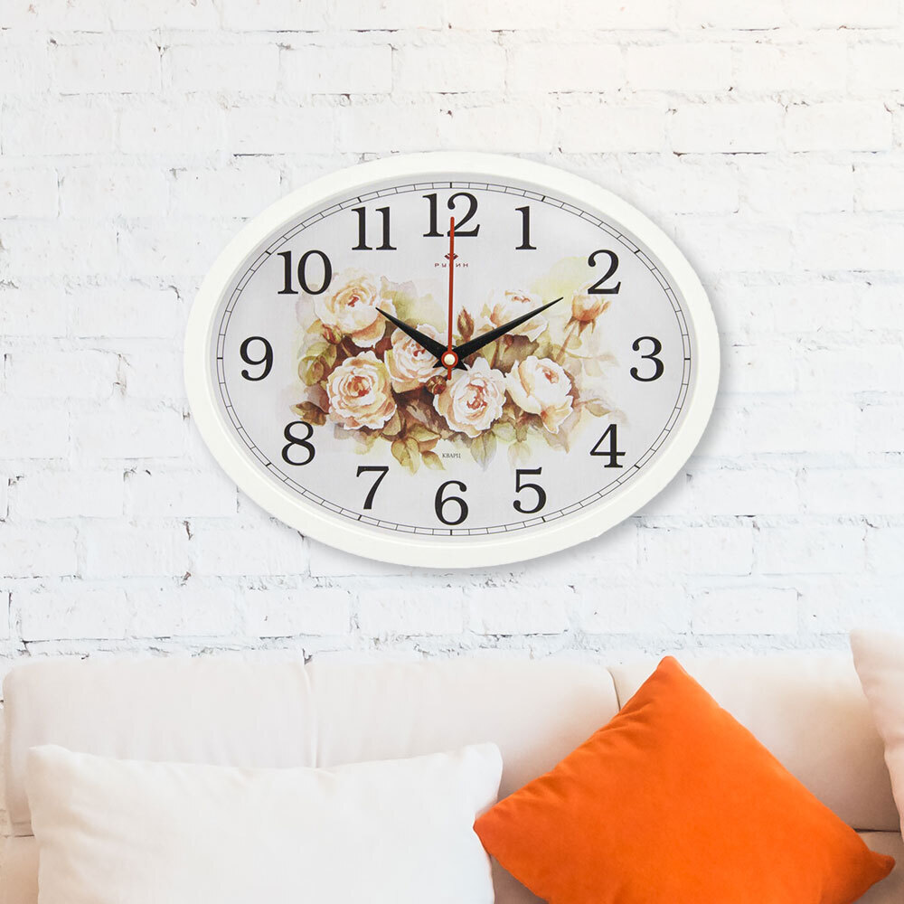 Часы отличатся точным ходом благодаря кварцевому механизму и плавному движению стрелок. Простая разметка арабскими цифрами, хорошо заметными на светлом фоне, обеспечивает лёгкость восприятия времени для взрослых и детей. Идеально впишутся в современный и классический интерьер, украсят рабочий кабинет, зону отдыха или станут практичным подарком близким.
