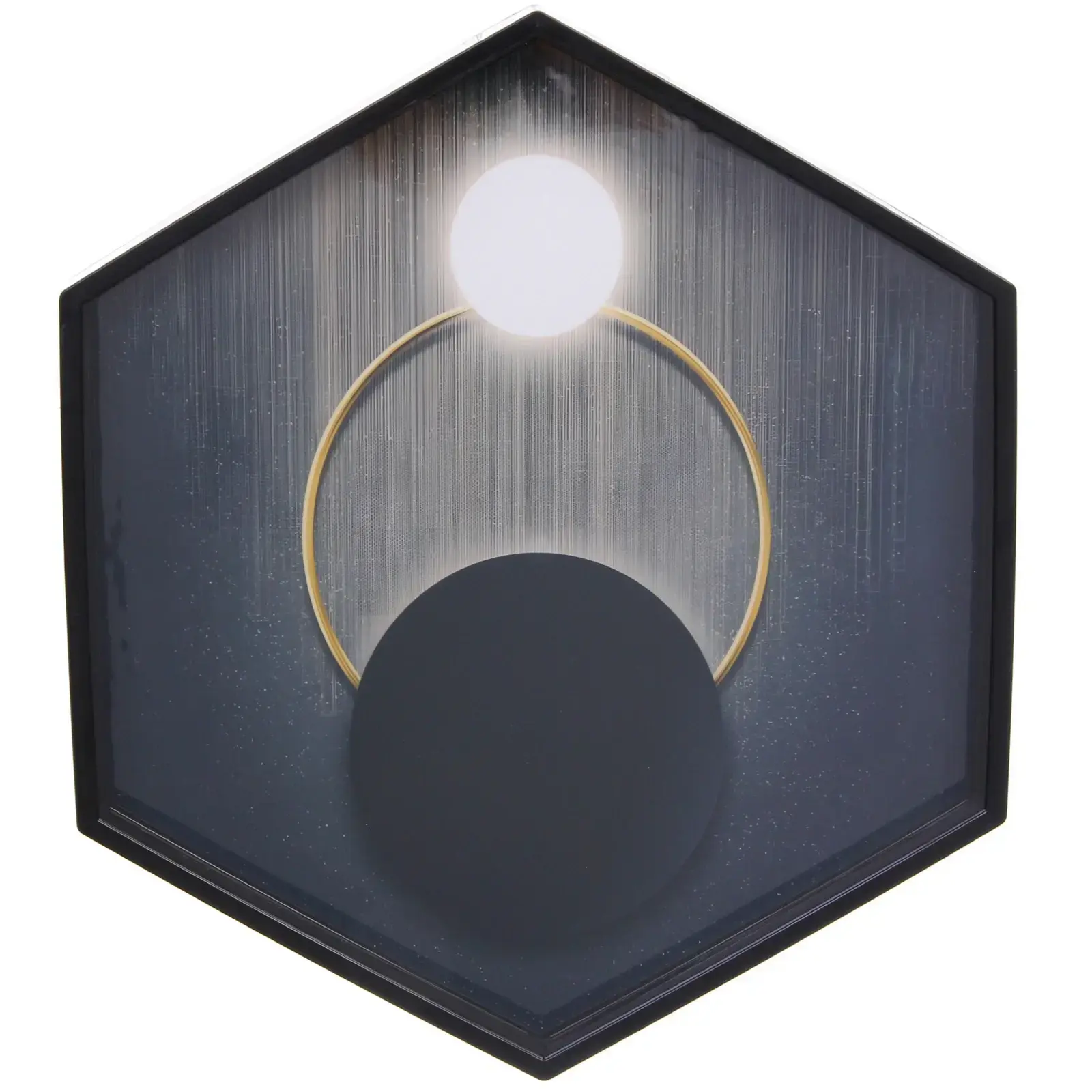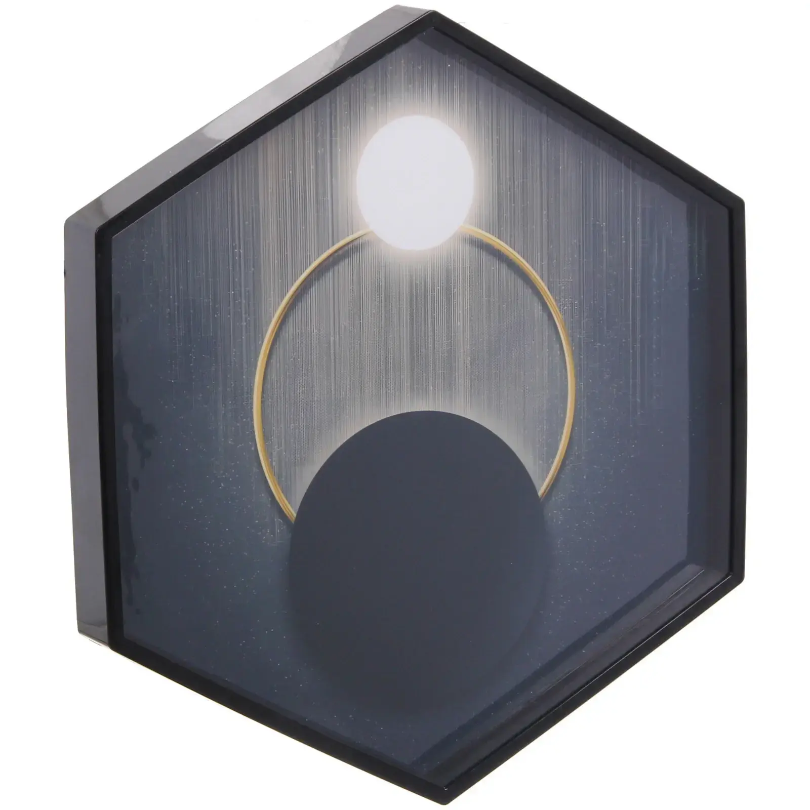 - Шестигранный элемент с золотым акцентом добавляет глубину интерьерной композиции