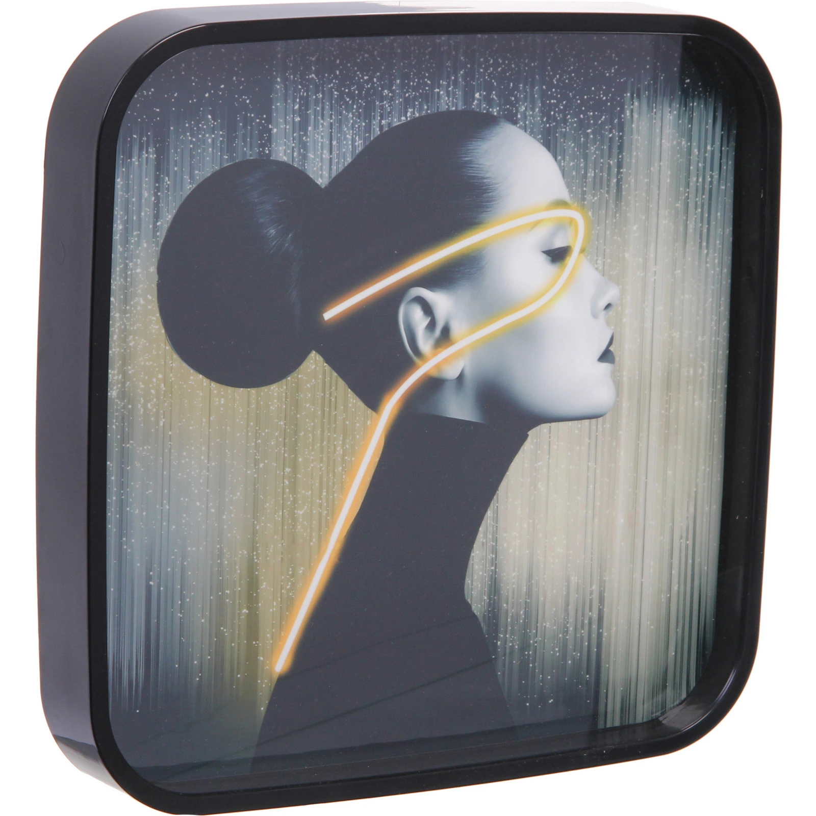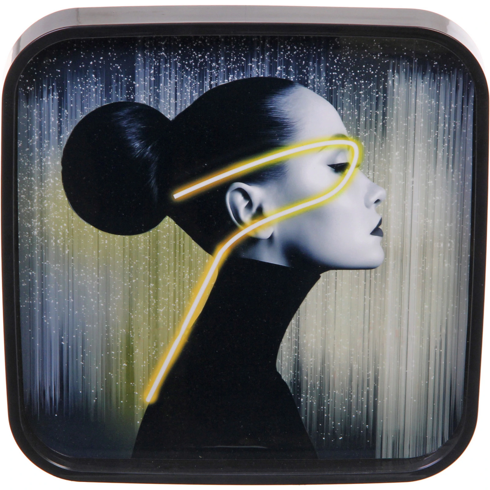 - Квадратное панно с закругленными углами с графическим портретом в стиле «Незнакомка». Монохромное изображение профиля женщины дополнено яркой светящейся линией, создающей эффект неоновой подсветки.