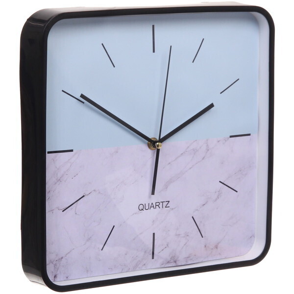Часы имеют квадратную форму и размер 30х30 см, что делает их подходящими для различных стилей интерьера — от классического до современного. Они легко впишутся в кухню, гостиную или офис. Часы оснащены надежным кварцевым механизмом, что гарантирует точность и долговечность. Чёрные стрелки на циферблате обеспечивают хорошую видимость времени, а золотистый механизм добавляет элегантности.