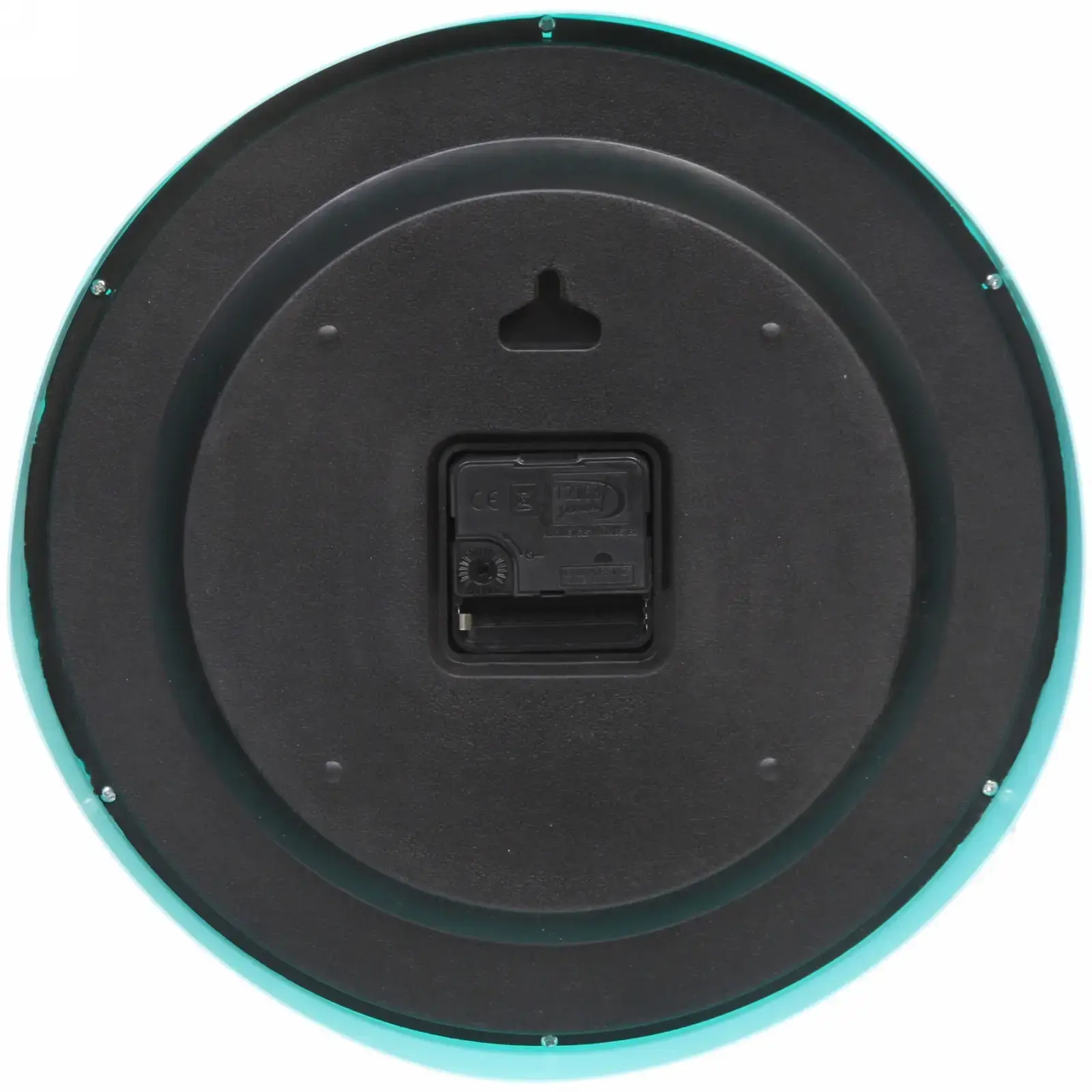 Часы имеют диаметр 30 см и выполнены из качественных материалов: металл и пластик. Их голубая рамка и светло-зеленый циферблат с крупными белыми цифрами делают их не только функциональными, но и стильными. Часы легко крепятся на стену, что позволяет вам выбрать идеальное место для их размещения.