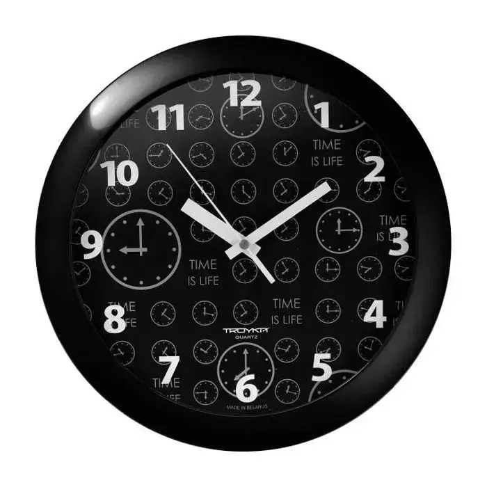 Создайте атмосферу уюта и организованности в доме с настенными кварцевыми часами 'Тройка'. Минималистичный дизайн с черным циферблатом и белыми стрелками станет идеальным дополнением любого помещения.