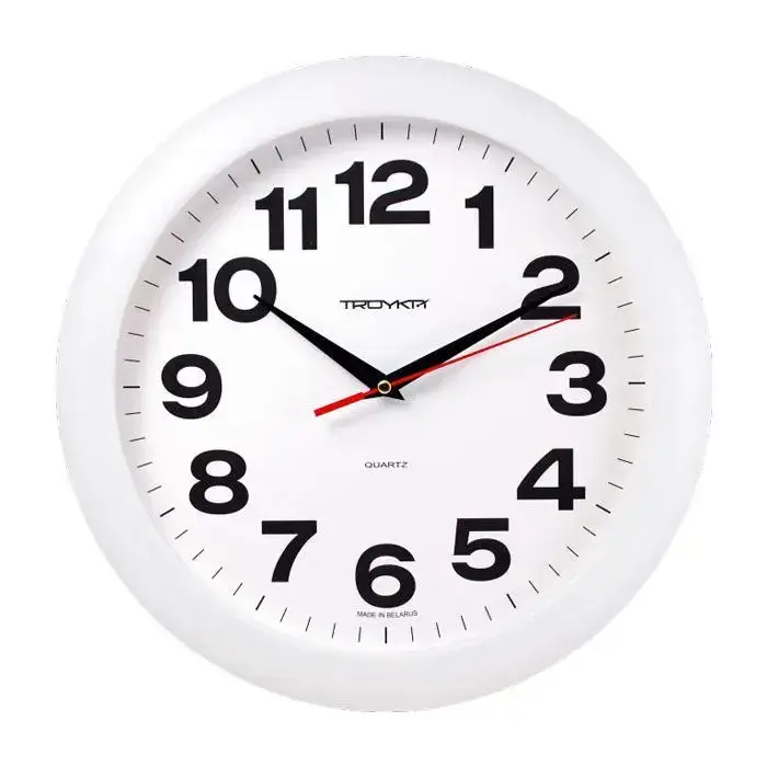 Часы настенные 'Тройка' кварцевые, белый корпус, крупные цифры, точный ход