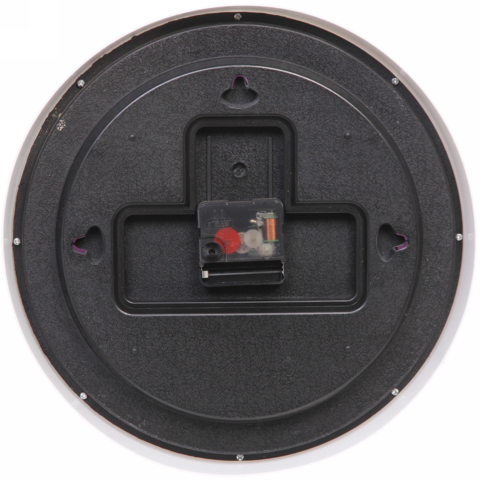 Корпус часов выполнен из комбинации металла и пластика, что обеспечивает прочность и долговечность. Задняя панель оснащена стандартными отверстиями для надежного крепления на стену. Простая установка батарейки (тип АА, в комплект не входит) делает эксплуатацию максимально удобной.