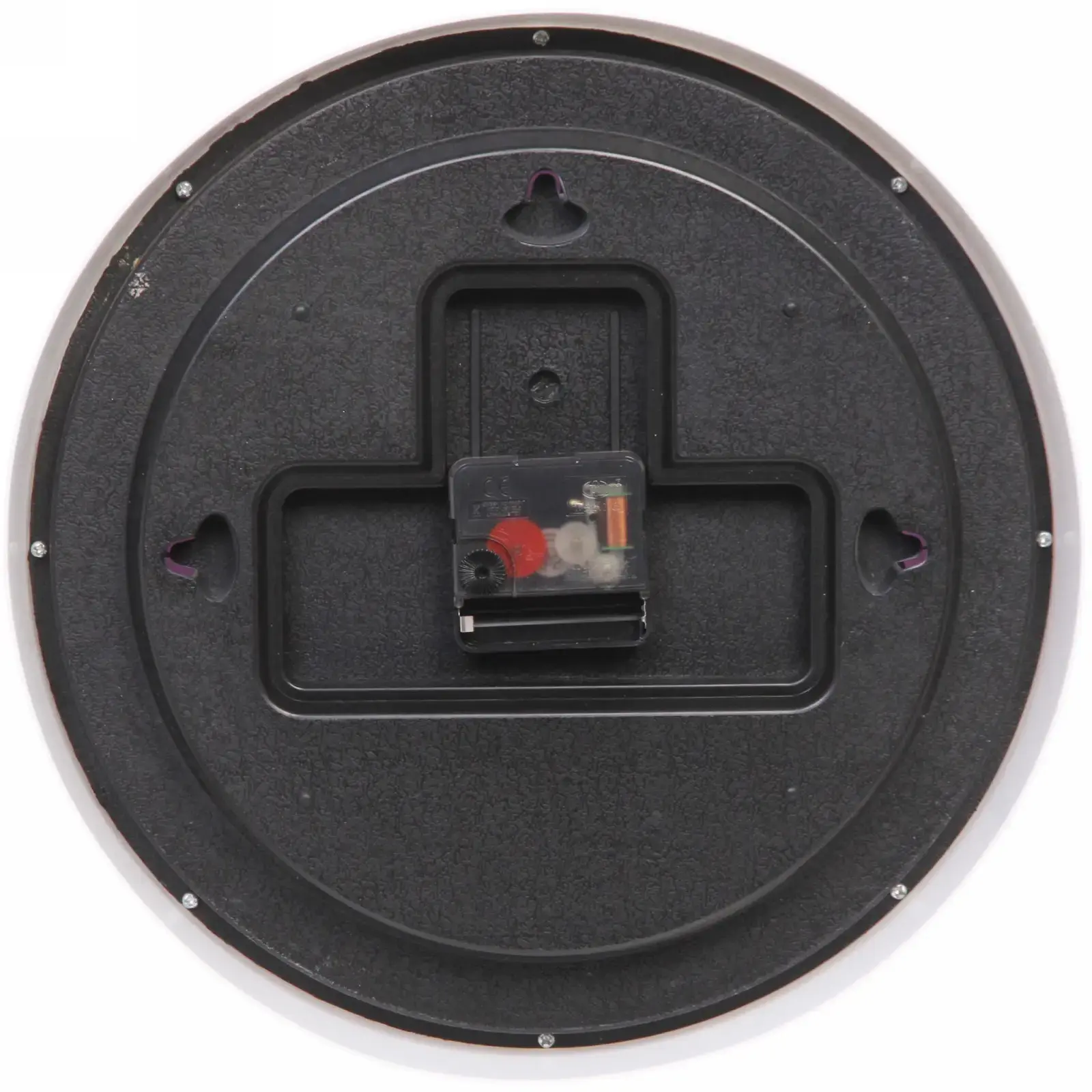 Часы имеют круглую форму и белый пластиковый корпус, что делает их легкими и простыми в уходе. Циферблат оформлен в светлых тонах с черными стрелками и цифрами, что обеспечивает хорошую читаемость. Размер часов составляет 30 см в диаметре, что делает их заметным элементом декора, не занимая при этом много места.