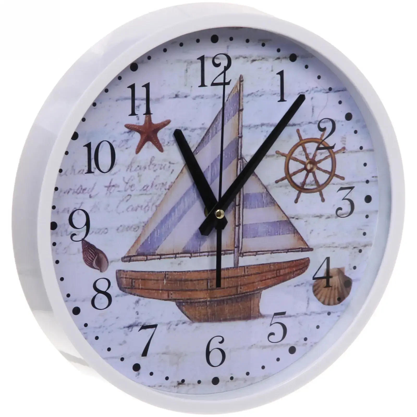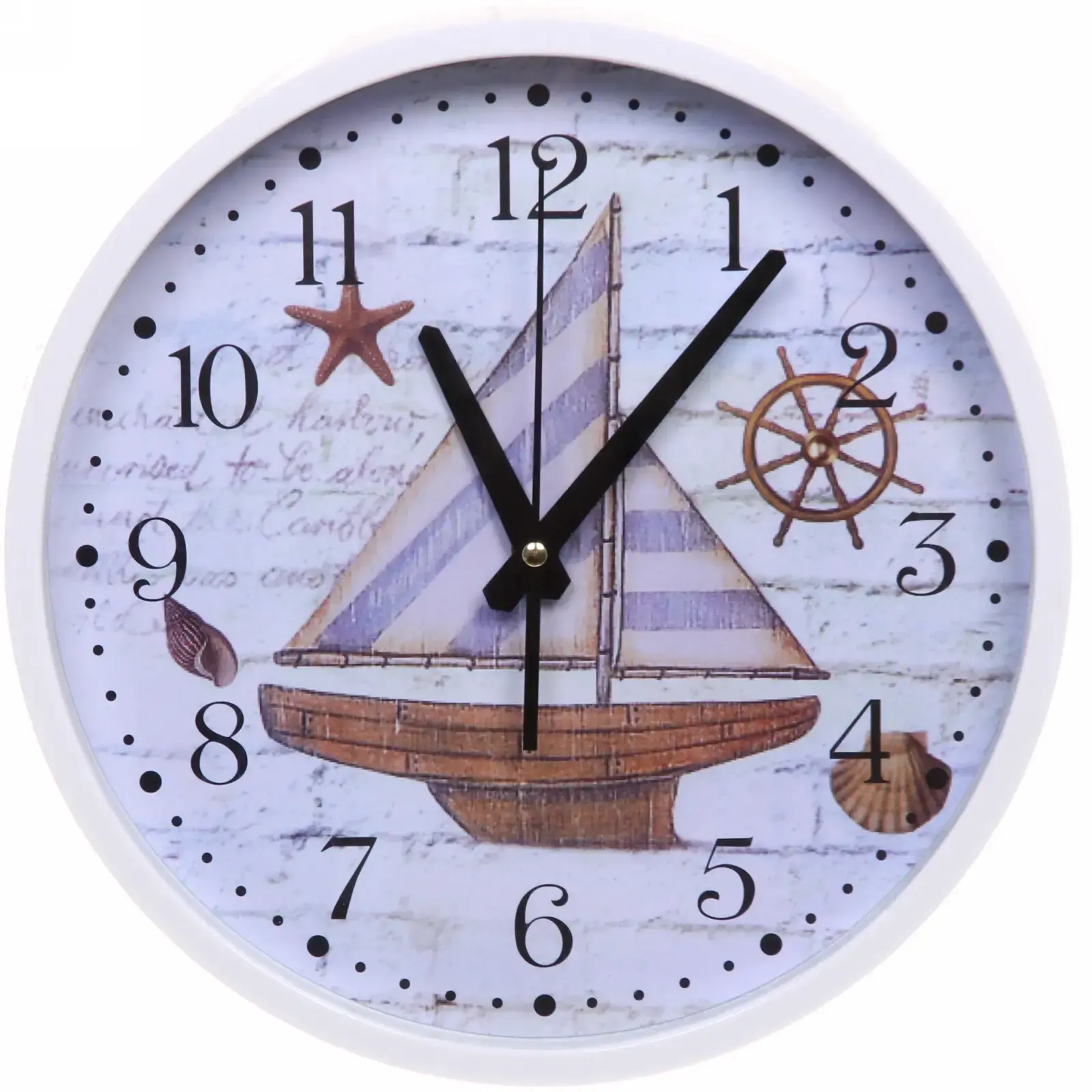 Эти часы выделяются своим плавным ходом и отсутствием шума, что позволяет наслаждаться тишиной в вашем доме. Декоративный дизайн выполнен с учетом последних тенденций в оформлении интерьеров, что делает их не только функциональными, но и стильными. Часы украшены изображениями парусника, морских звезд и штурвала, что подчеркивает их уникальность и тематику.