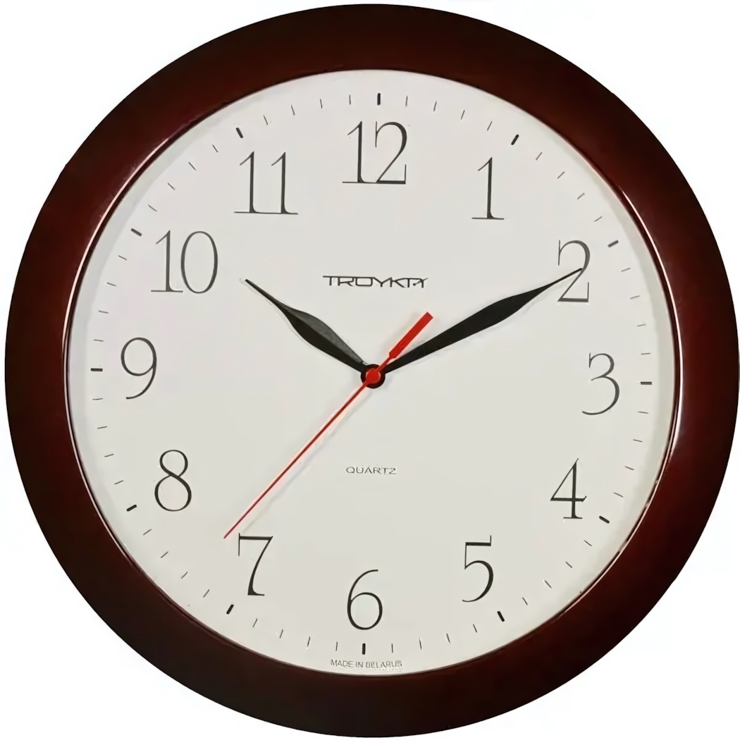 Настенные часы 'TROIKA' станут идеальным дополнением вашего интерьера, сочетая классический дизайн с современной кварцевой точностью. Минималистичный циферблат с четкими черными цифрами обеспечивает легкость считывания времени.
