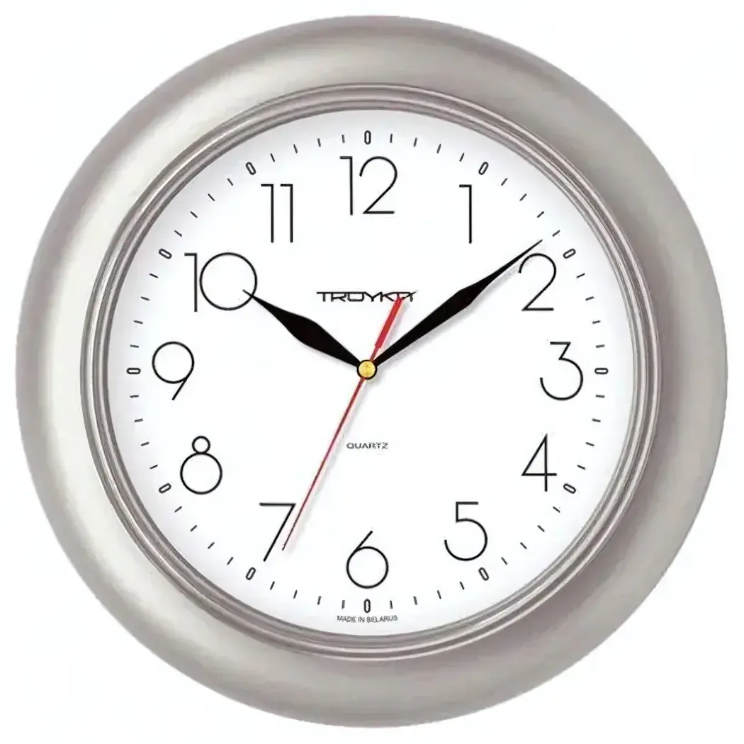 Часы настенные кварцевые 'TROIKAT' белый циферблат, серебристый корпус