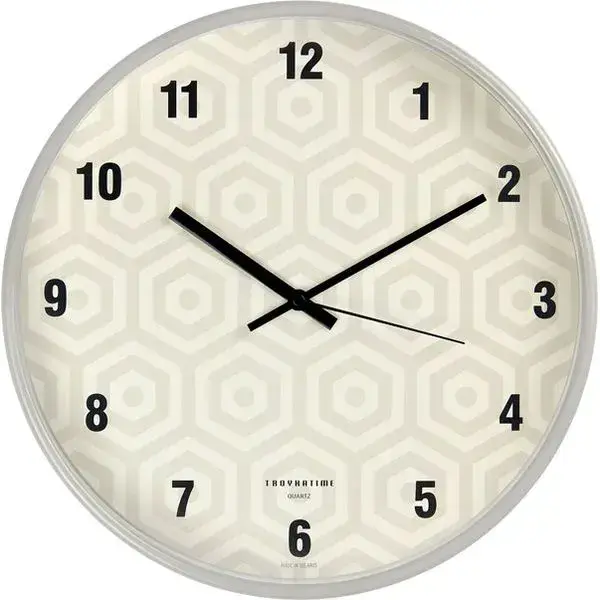 Эти часы сочетают минималистичный дизайн и функциональность, становясь стильным дополнением гостиной, кухни или офиса. Геометрический узор из шестиугольников создаёт динамичный визуальный эффект, сохраняя при этом лаконичность форм.