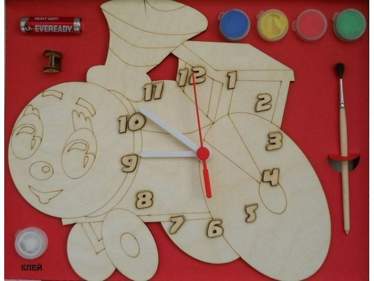 Набор для творчества "Паровозик": деревянные часы с красками и кистью, 18х18см