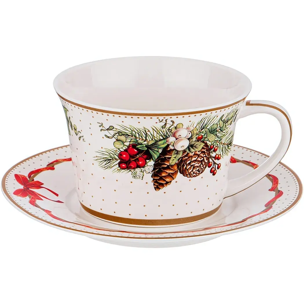 Праздничный набор из тонкостенного фарфора создаст атмосферу волшебства за вашим столом. Изящная чашка с удобной ручкой и классическое блюдце украсят зимнее чаепитие, сохраняя напиток горячим благодаря качественному материалу.