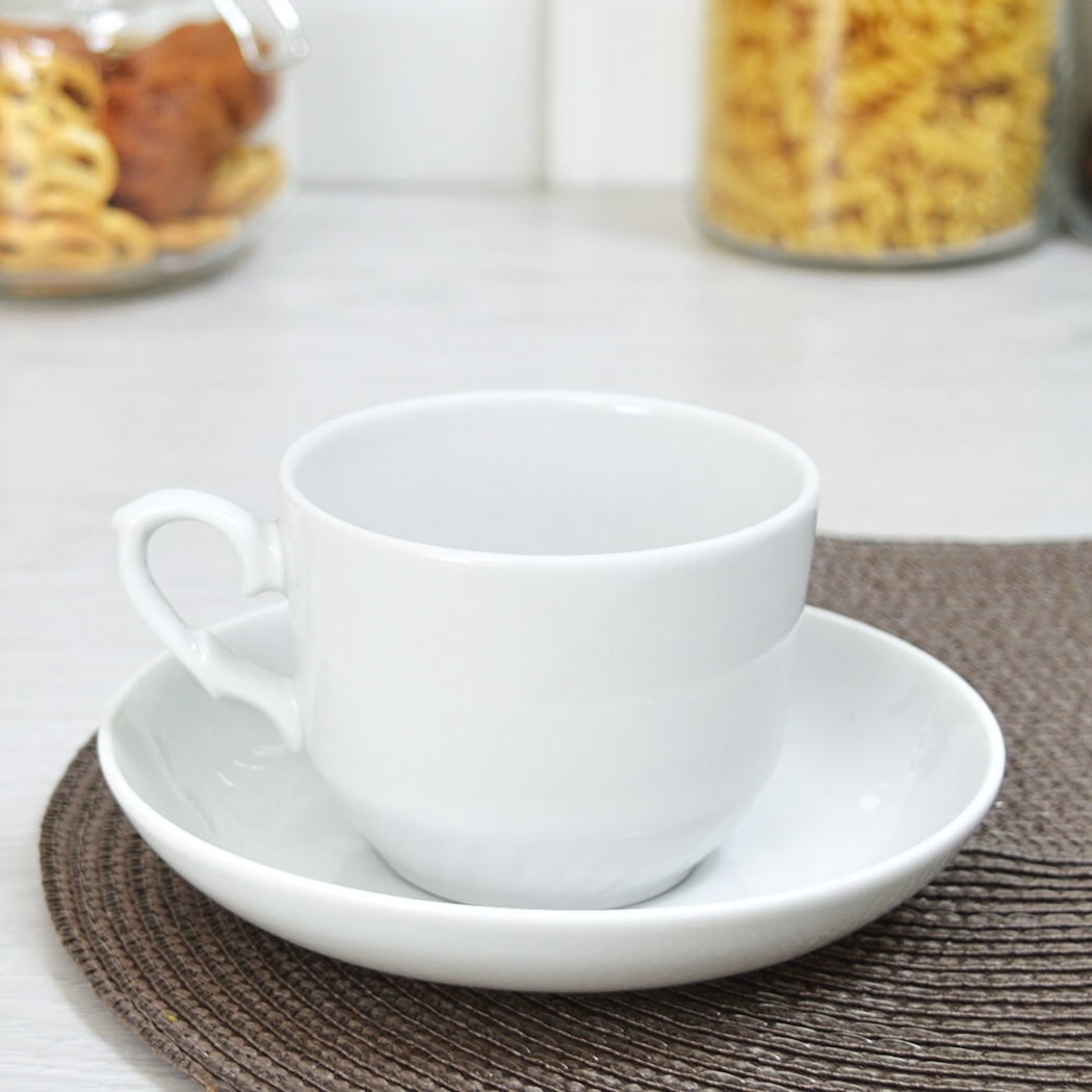 Чайная пара 250мл, форма 'Кирмаш', фарфор, белый, без рисунка