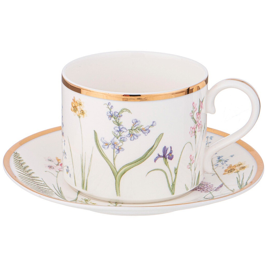 Чайная пара 'Grassland' 300мл, фарфор, цветочный орнамент с золотым обрамлением