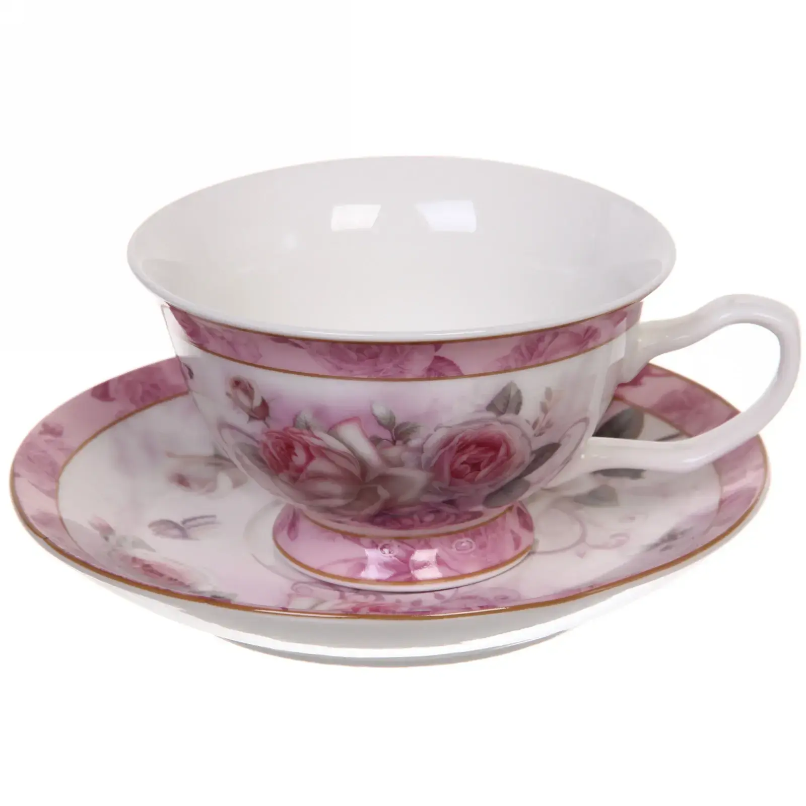 Керамическая чайная пара «Грация» сочетает практичность и утонченный дизайн, создавая атмосферу домашнего уюта. Розовые цветочные мотивы с золотым декором превращают каждое чаепитие в эстетическое удовольствие, а прочная керамика сохраняет тепло напитка.
