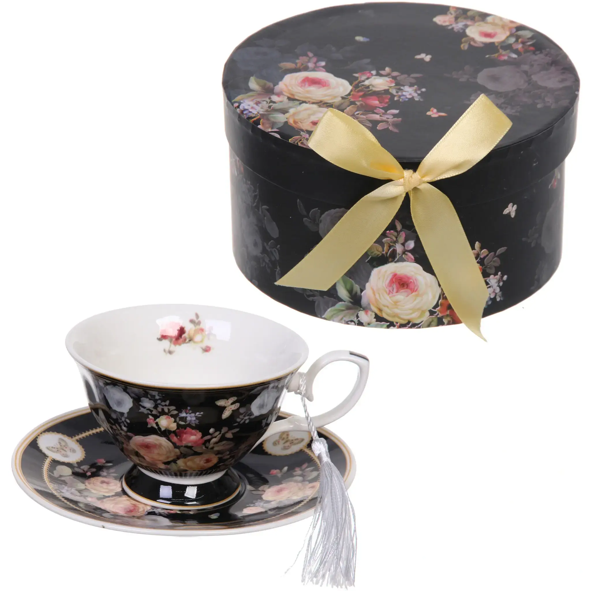 Погрузитесь в атмосферу уюта и стиля с нашей чайной парой керамической «Грация». Эта изысканная пара, состоящая из чашки объемом 220 мл и блюдца, выполнена в черном цвете с утонченным цветочным узором, что делает её идеальным выбором для сервировки чая или кофе. Пара упакована в стильную подарочную коробку, что делает её отличным подарком для близких и друзей.