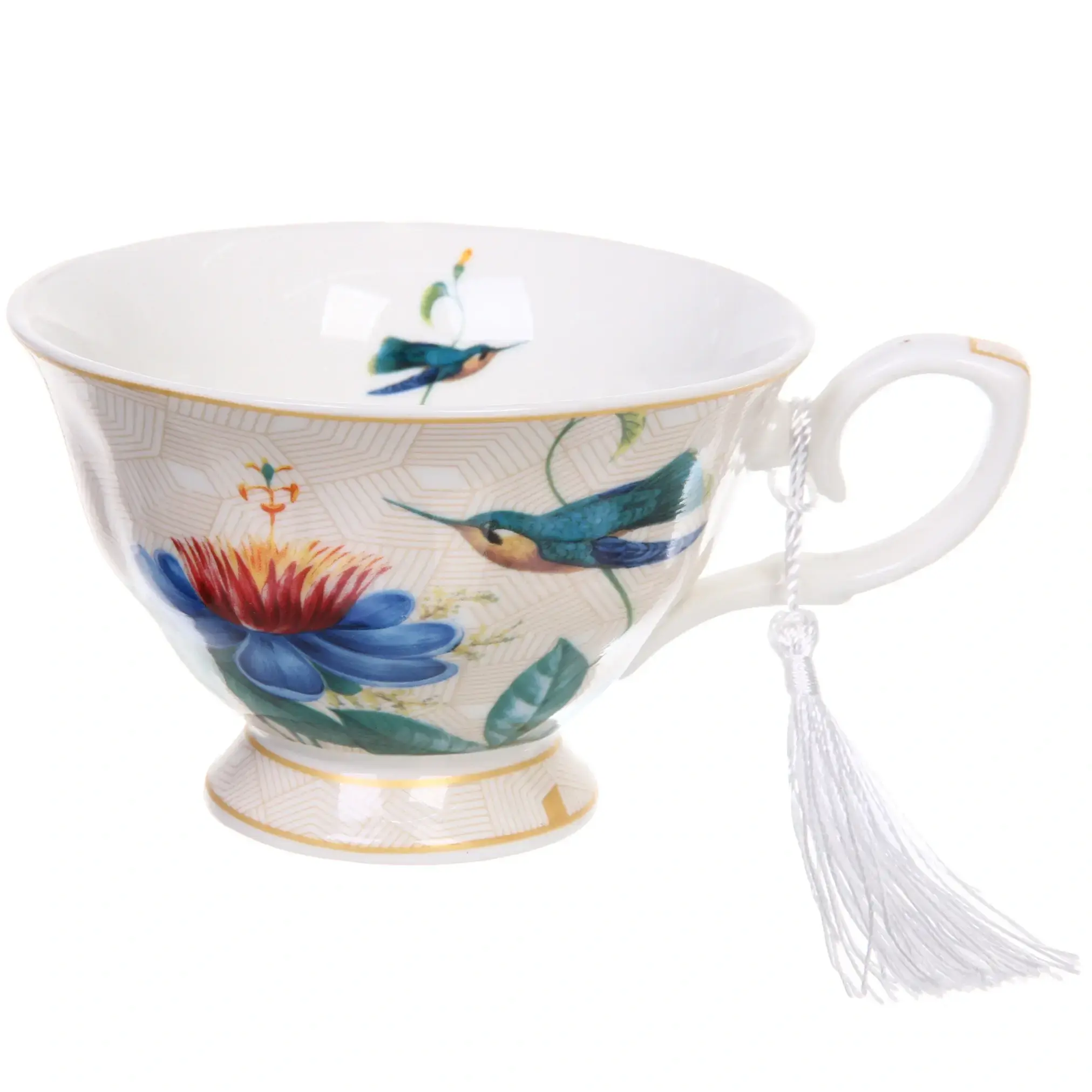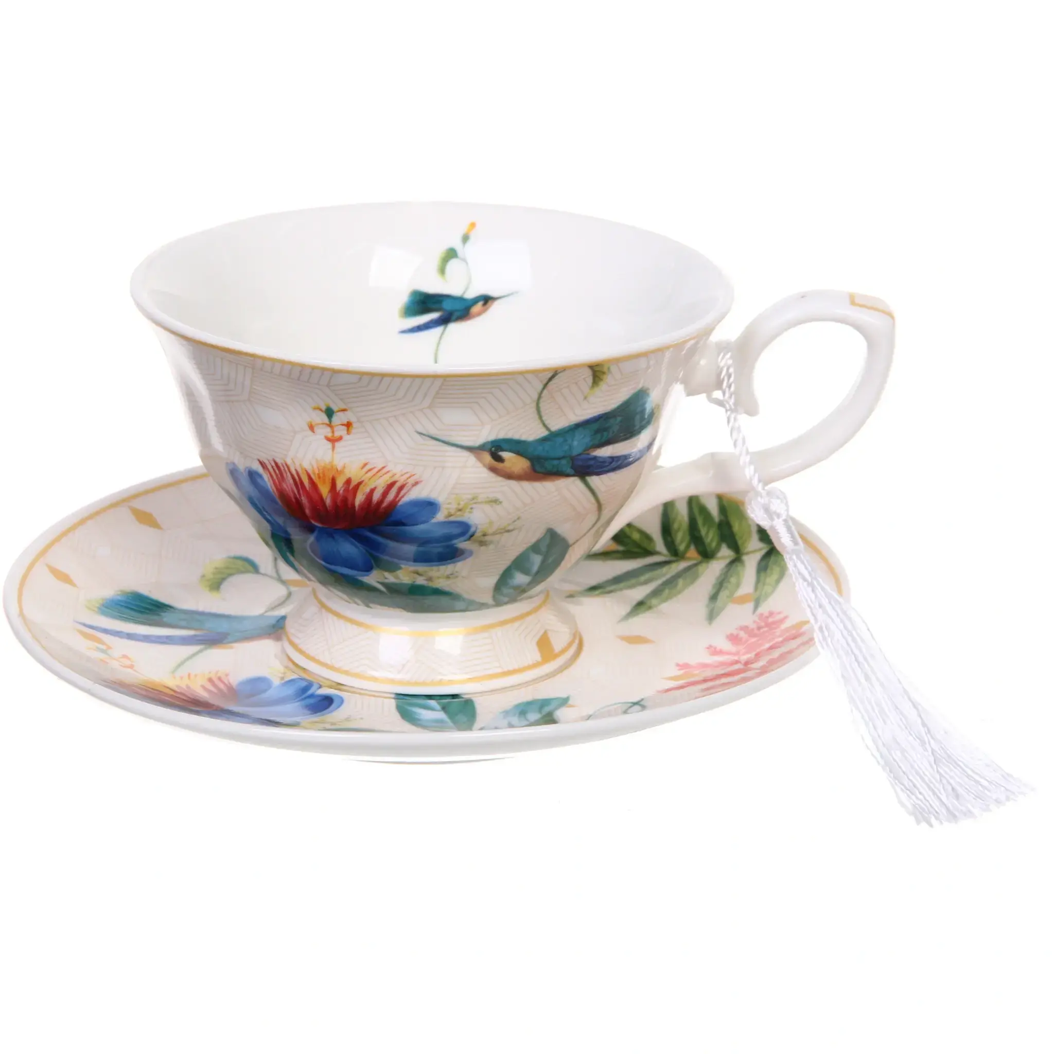 Погрузитесь в атмосферу уюта и элегантности с чайной парой керамической «Грация». Эта изысканная пара, состоящая из кружки объемом 220 мл и блюдца, станет идеальным дополнением к вашему чаепитию. Яркий цветочный дизайн с изображениями экзотических птиц и цветов не только радует глаз, но и создает атмосферу праздника в каждом глотке.
