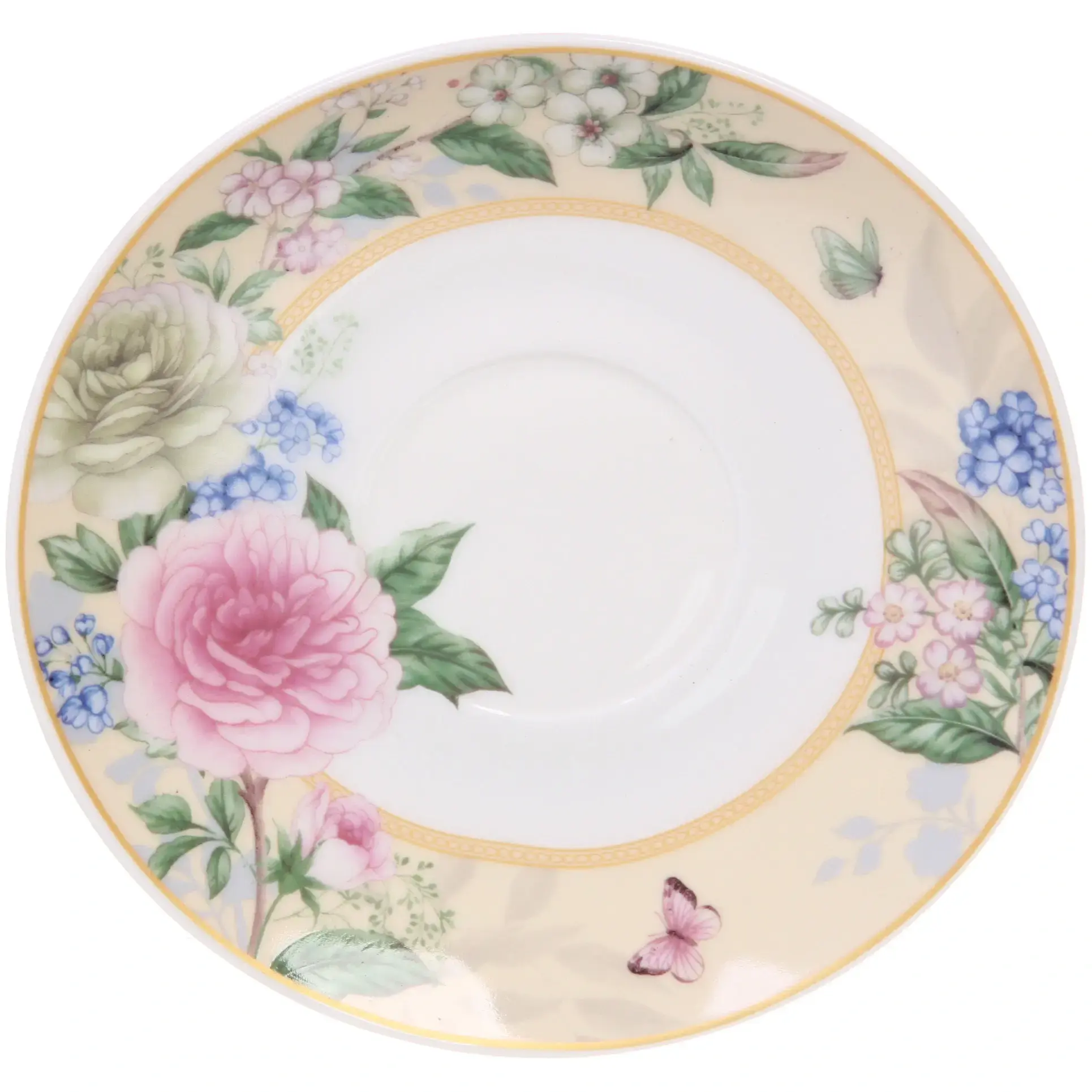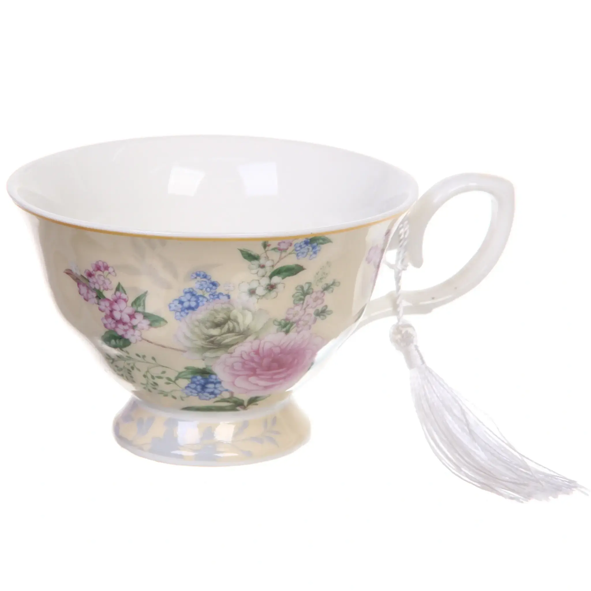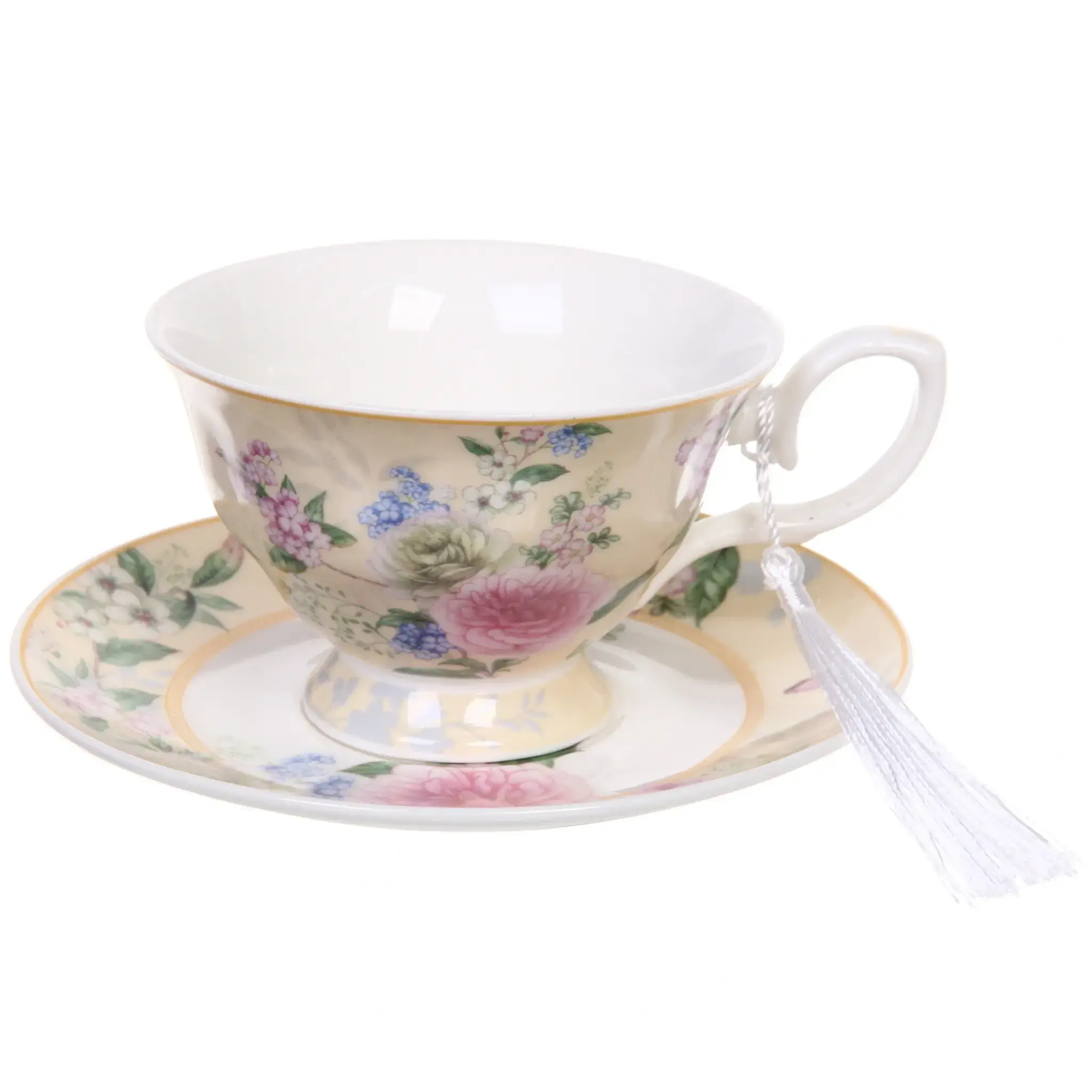 Чайная пара выполнена из керамики кремового цвета с цветочным декором, что делает её универсальной для любого интерьера. Размер кружки составляет 220 мл, что идеально подходит для подачи чая или кофе. Блюдце также выполнено в том же стиле, что и кружка, создавая гармоничное сочетание. Пара станет отличным выбором для тех, кто ценит качество и стиль в каждой детали.