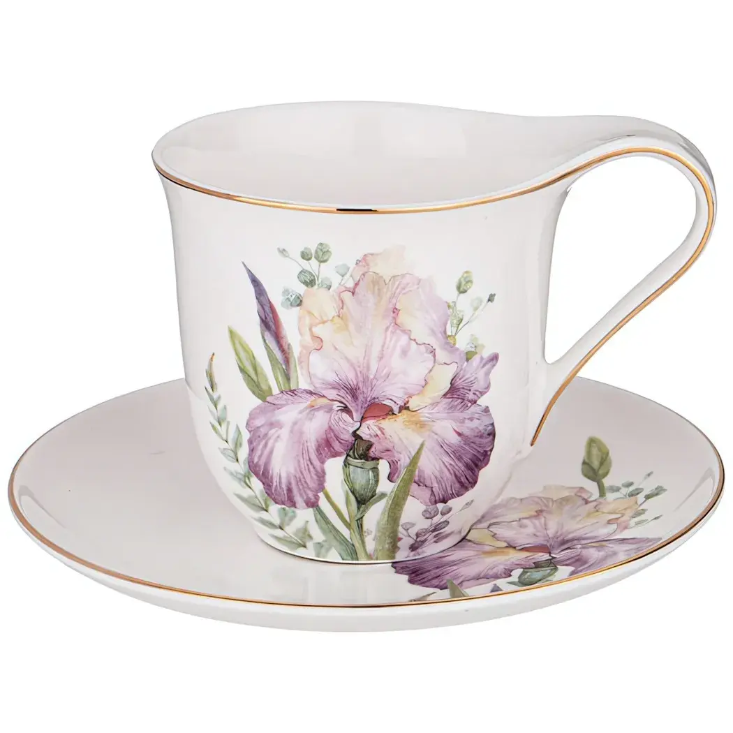 Чайная пара «IRISES» — это не просто посуда, это настоящее произведение искусства, которое добавит изысканности в каждое чаепитие. Изготовленная из качественного тонкостенного фарфора, она сочетает в себе нежные цветочные мотивы ирисов и золотую окантовку, что делает её идеальным выбором для тех, кто ценит красоту и стиль.