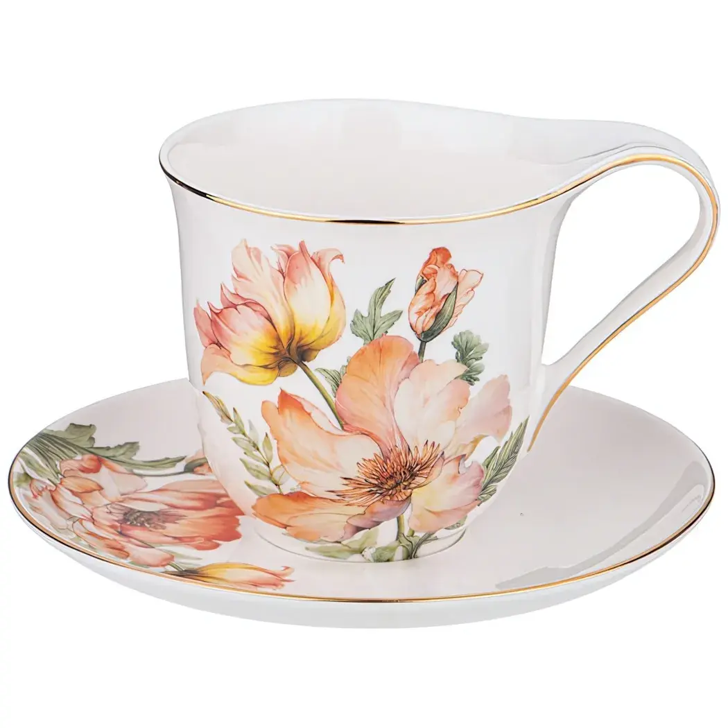 Почему стоит выбрать именно эту чайную пару? Во-первых, она выполнена из высококачественного фарфора, что гарантирует долговечность и надежность. Во-вторых, цветочный узор и золотистый ободок придают ей элегантный вид, который будет уместен как в повседневной, так и в праздничной обстановке. Кроме того, все изделия упакованы в красочные коробки, что делает их отличным подарком для друзей и близких.