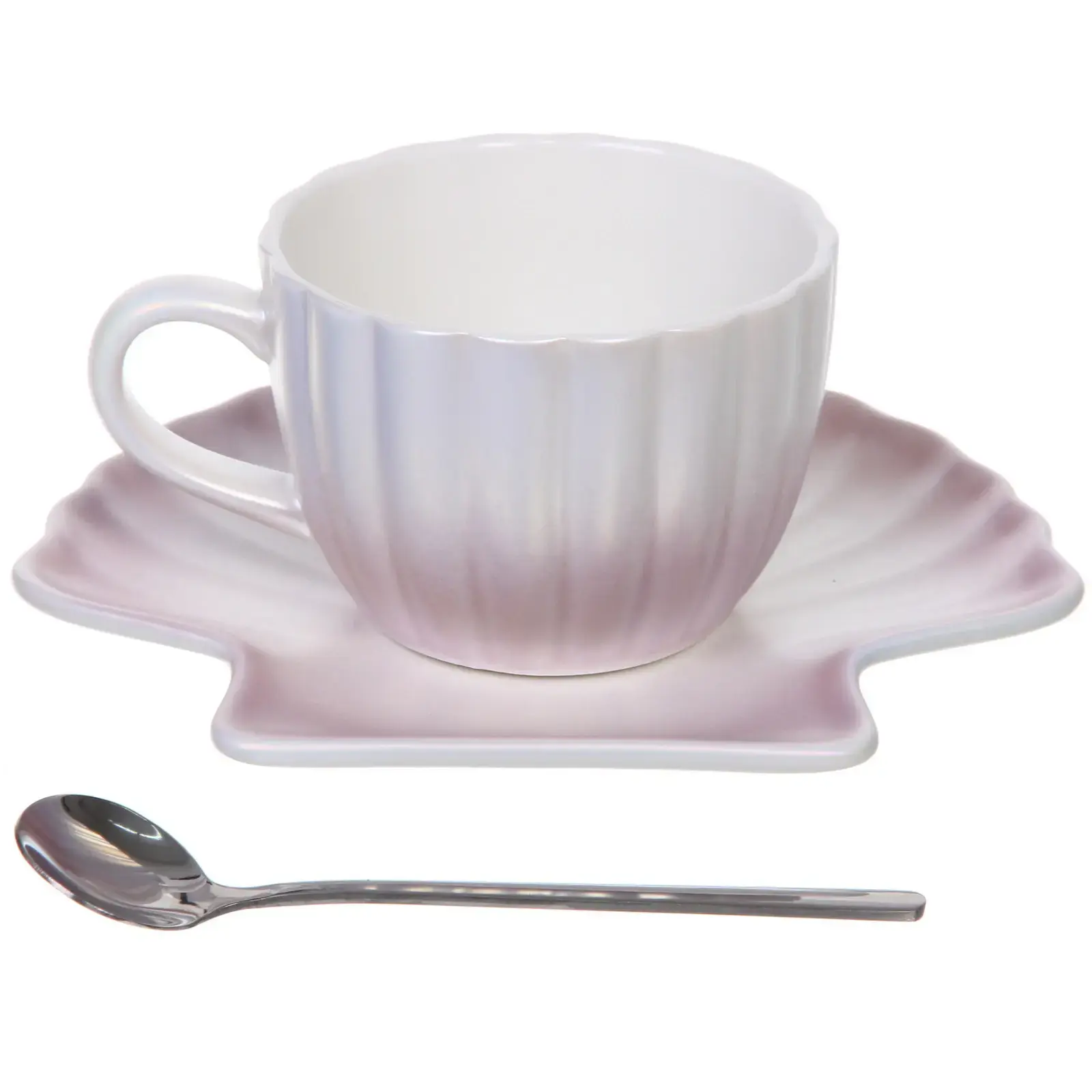 Чайная пара «Ракушка» идеально подходит для подачи горячих напитков, таких как чай или кофе. Кружка оснащена удобной ручкой, что делает её использование комфортным. Блюдце в форме раковины не только красиво выглядит, но и удобно для размещения ложки или закусок. Ложка с гладкой металлической поверхностью добавляет элегантности и практичности в каждую деталь.