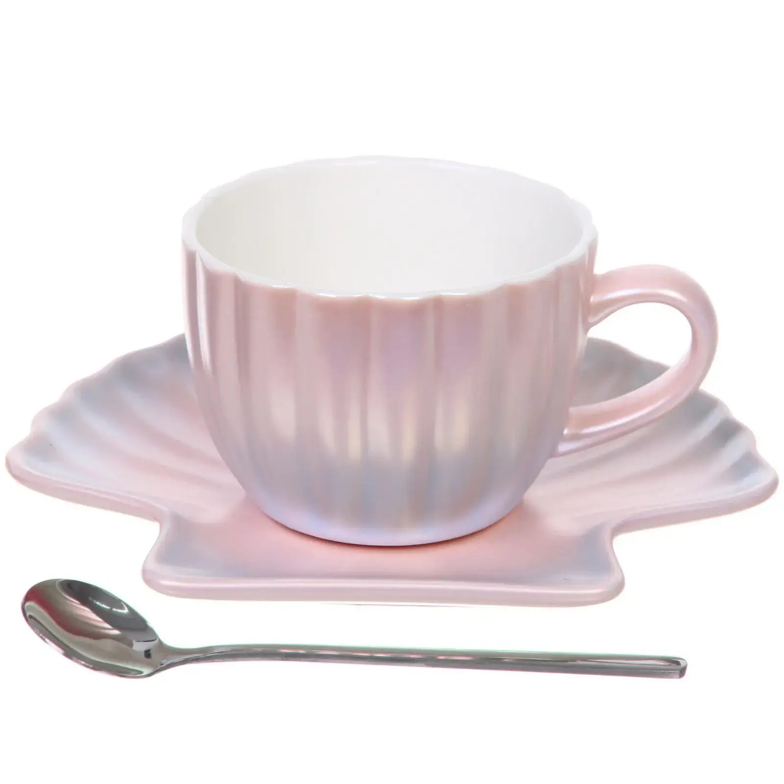 Чайная пара «Ракушка» идеально подходит для подачи чая, кофе или других горячих напитков. Кружка объёмом 230 мл имеет удобную ручку, что делает её использование максимально комфортным. Блюдце в форме раковины не только красиво смотрится, но и удобно для размещения ложки или сладостей. Ложка с блестящей металлической поверхностью добавляет элегантности и практичности.