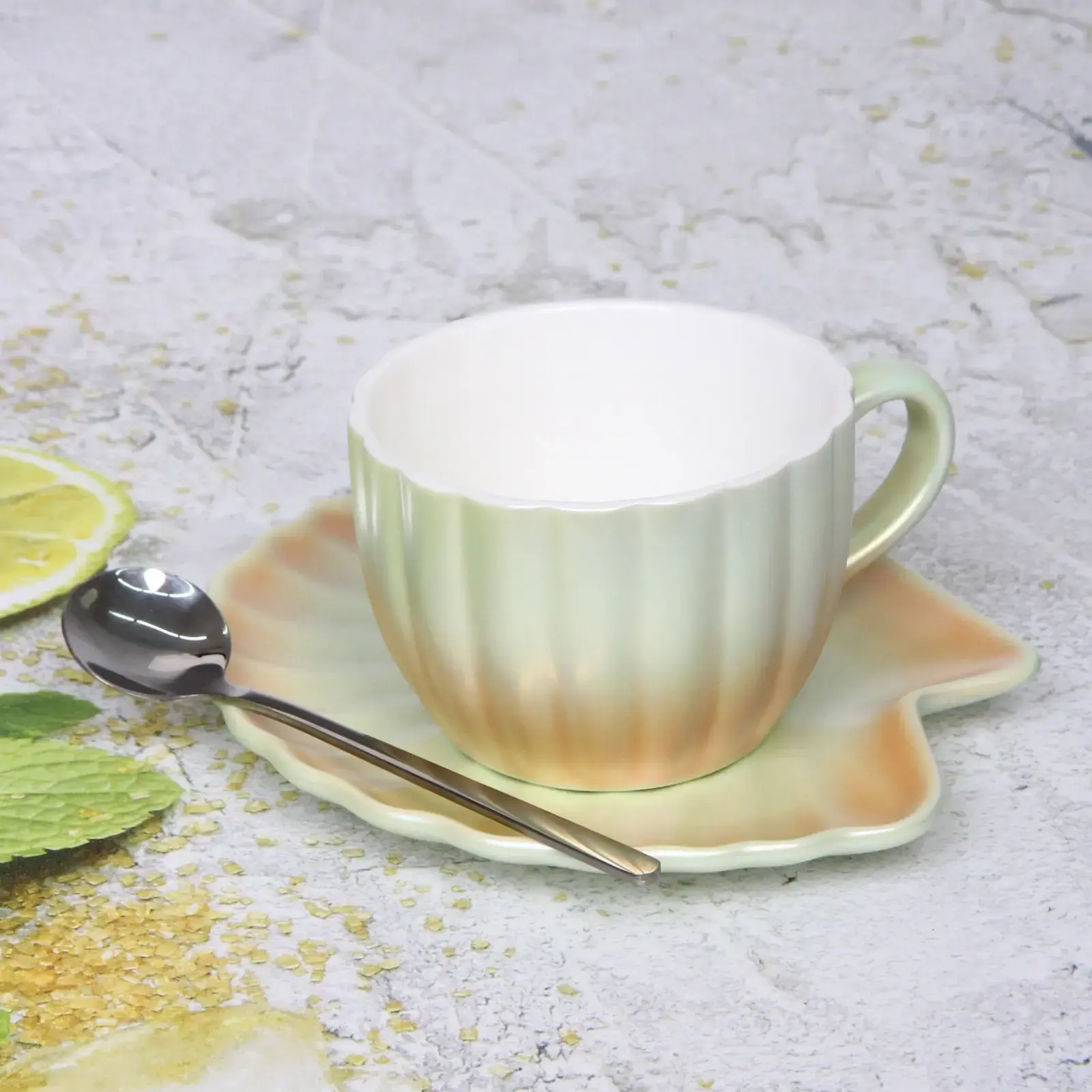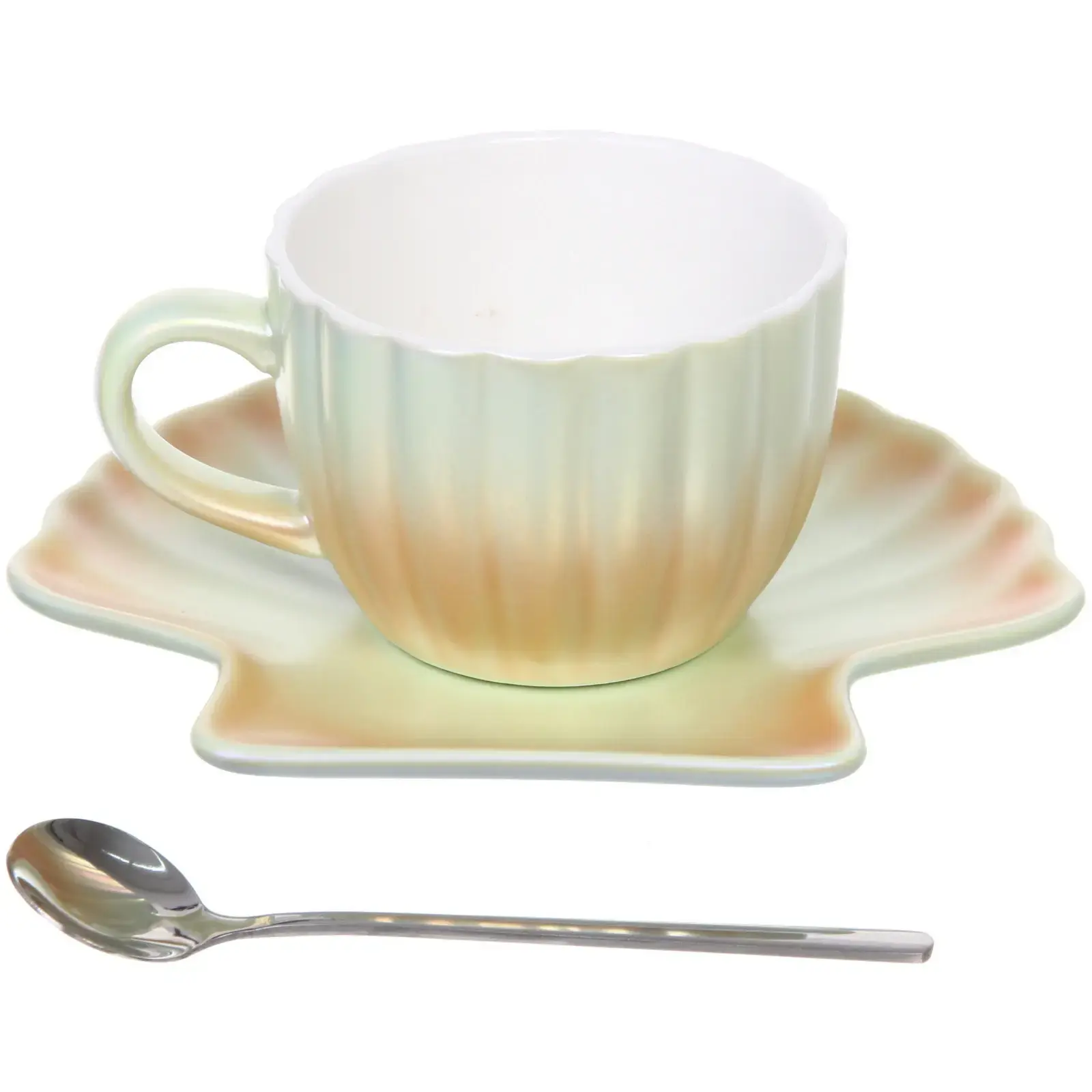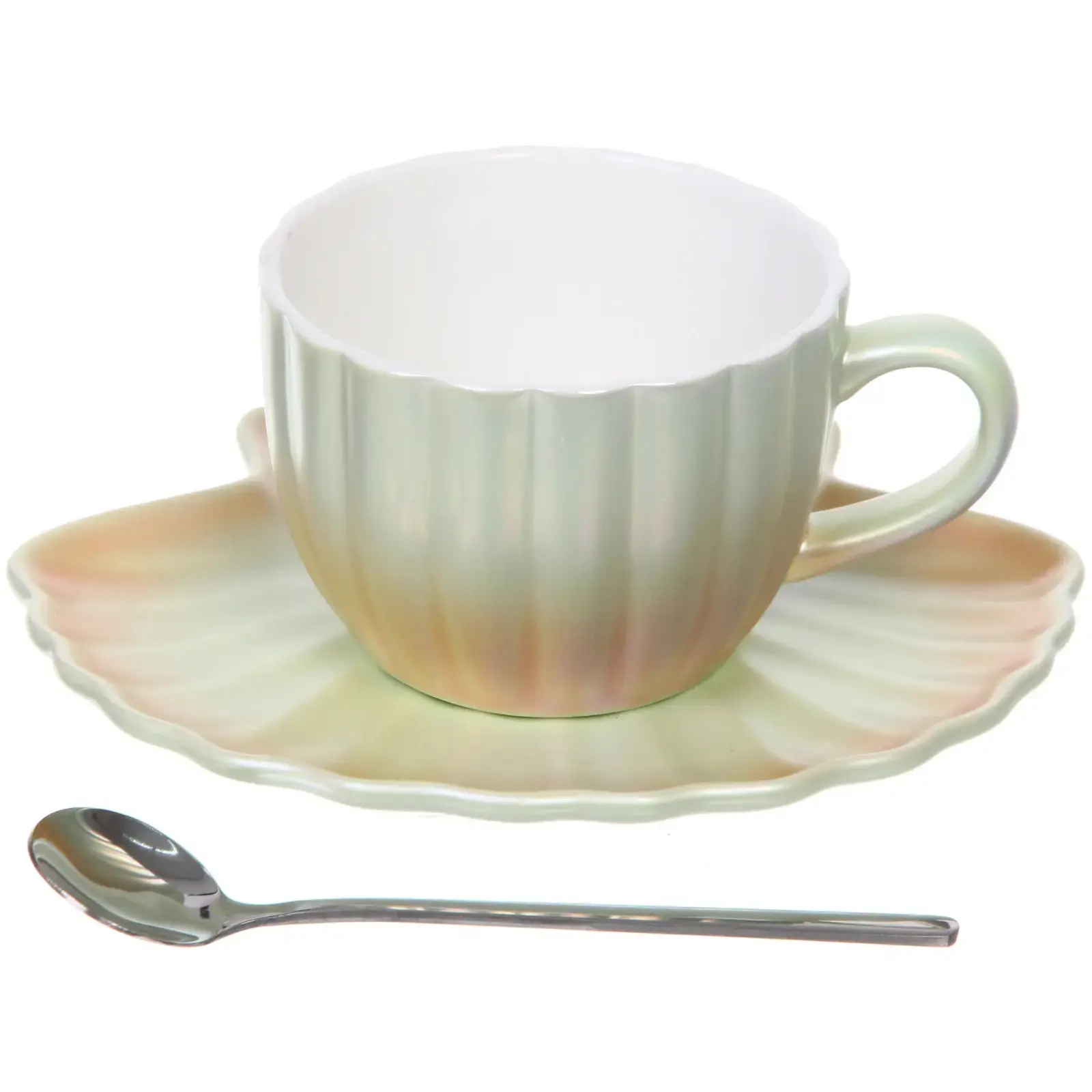 Эта чайная пара «Ракушка» станет настоящим украшением вашего стола. Изготовленная из качественной керамики, она сочетает в себе элегантный дизайн и практичность. Нежный зеленый цвет с перламутровым оттенком создает атмосферу уюта и комфорта, а уникальная форма раковины блюдца добавляет изысканности. Чашка объемом 230 мл идеально подходит для подачи чая или кофе, а металлическая ложка в комплекте делает использование еще более удобным.